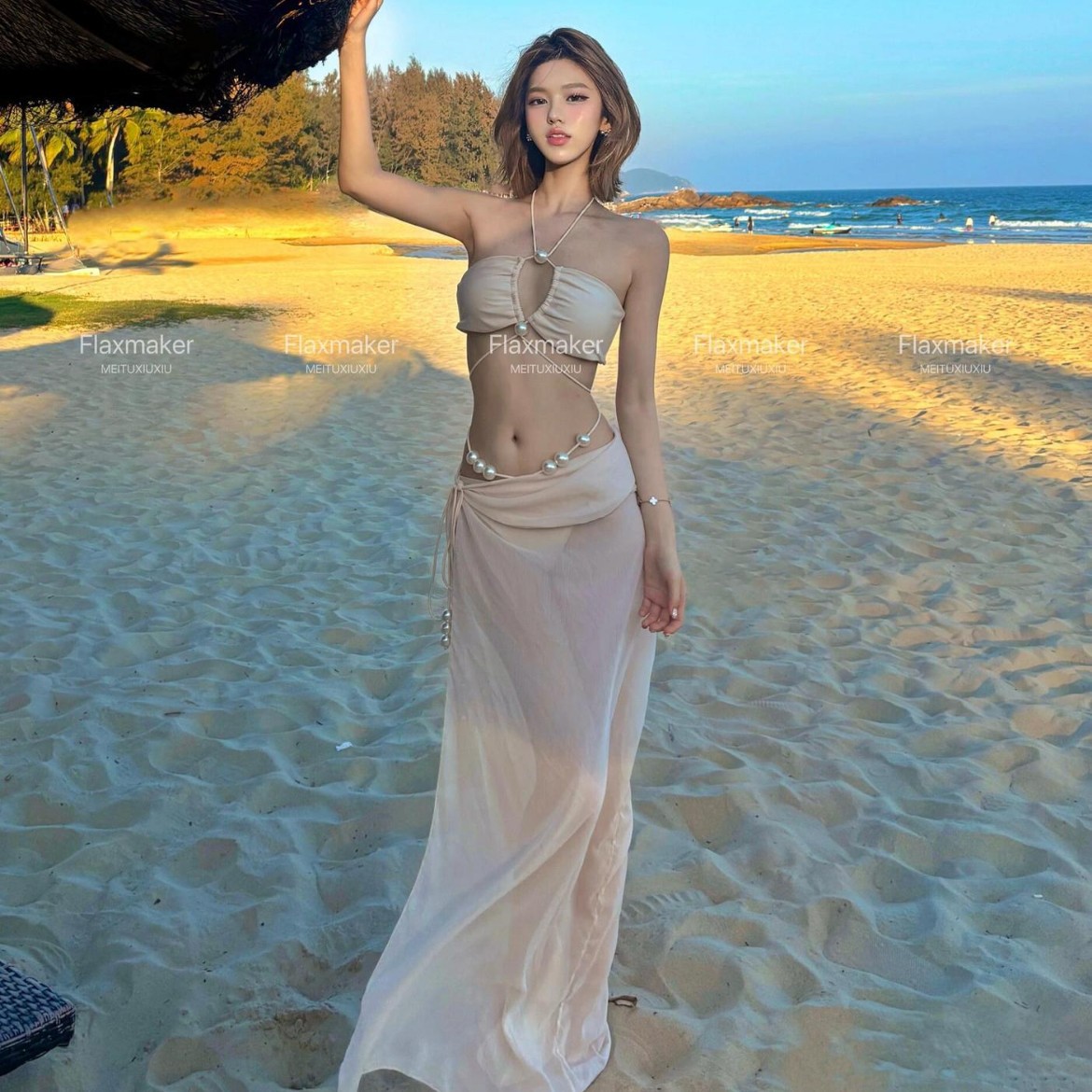 【月光協奏曲】純欲微透ビーチリゾートロングスカートbikiniセクシー水着カバースカート海島リゾート