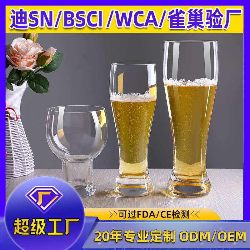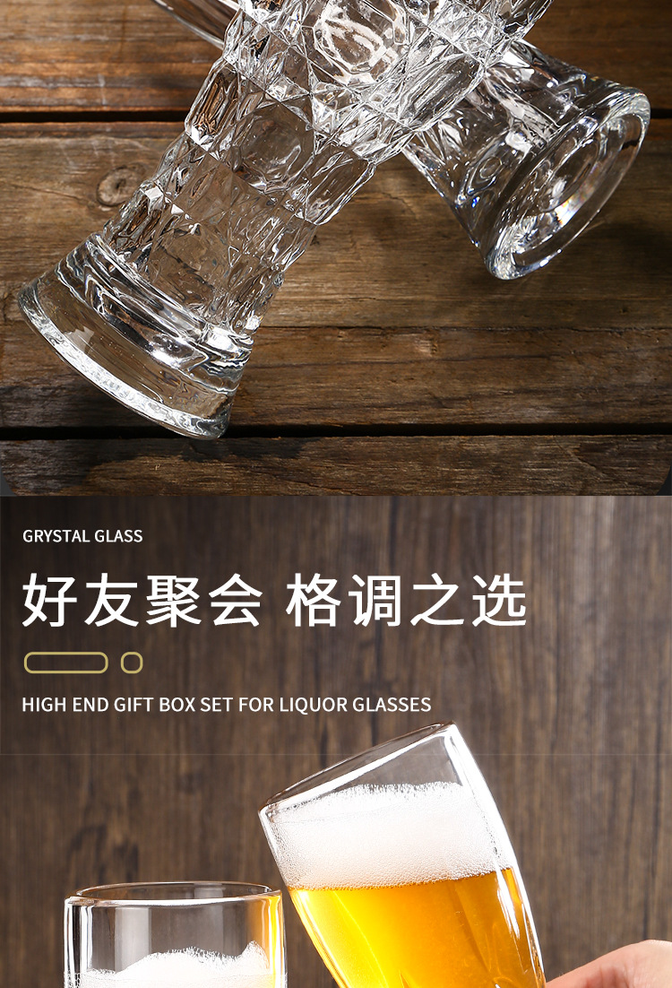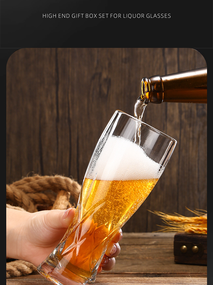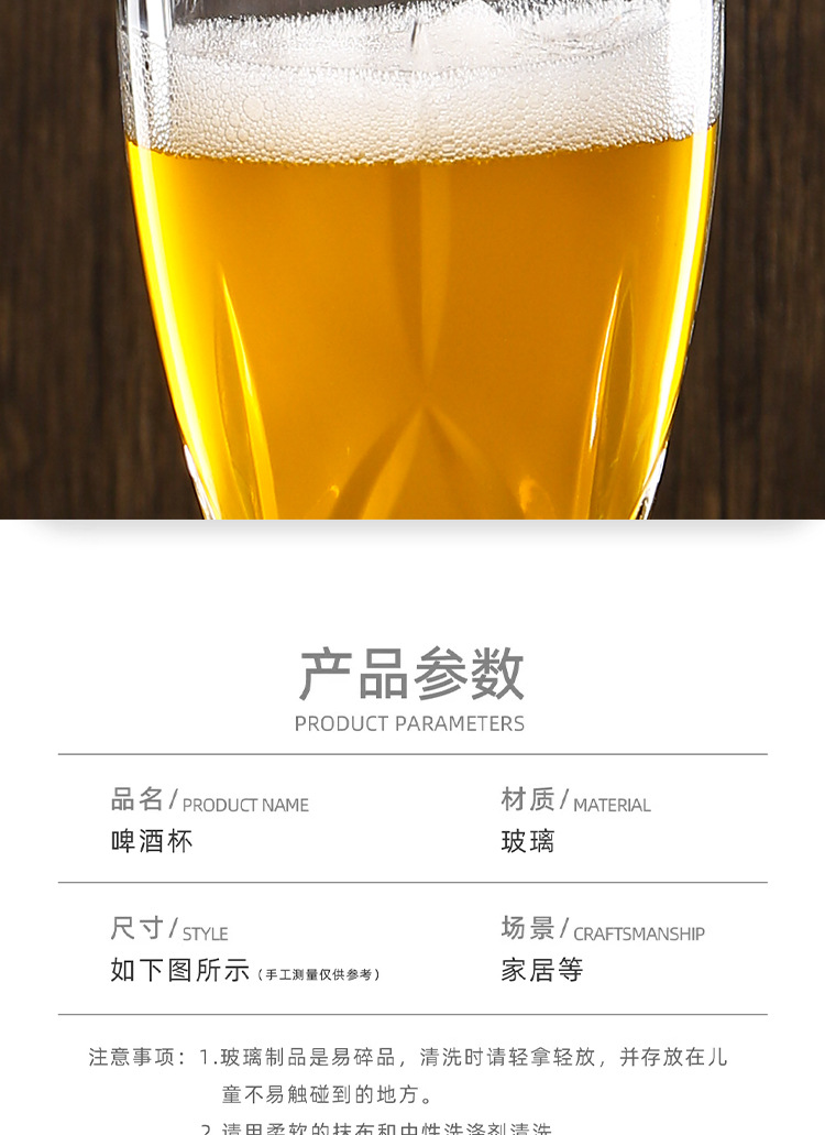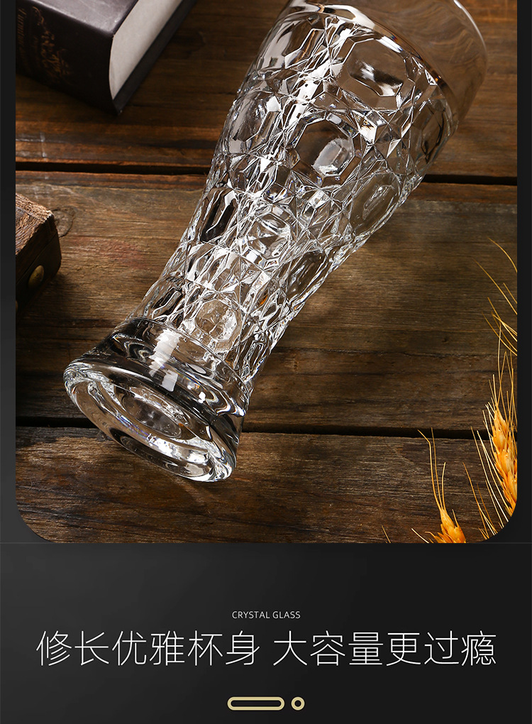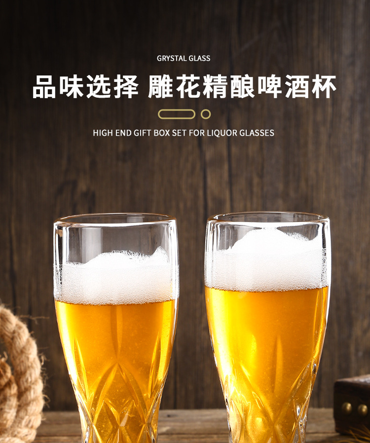 创意加厚玻璃雕花精酿收腰家用啤酒杯高颜值大容量扎啤套装饮料