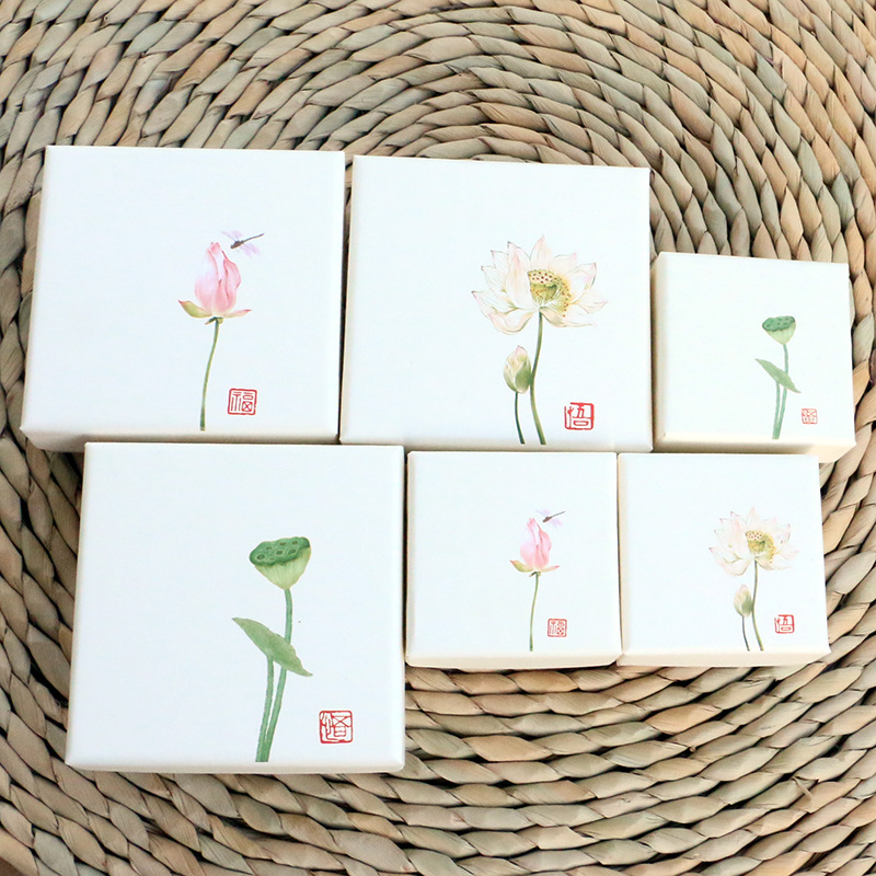 クリエイティブレトロ中国風アクセサリー包装箱ハスの花天地蓋アクセサリー箱指輪ネックレス箱現物卸売り