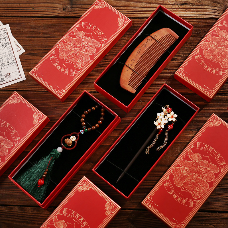 新年赤いタッセル車のペンダント包装ヘアコームヘアピンボックス辰砂ジュエリー春祭りギフトボックス在庫あり