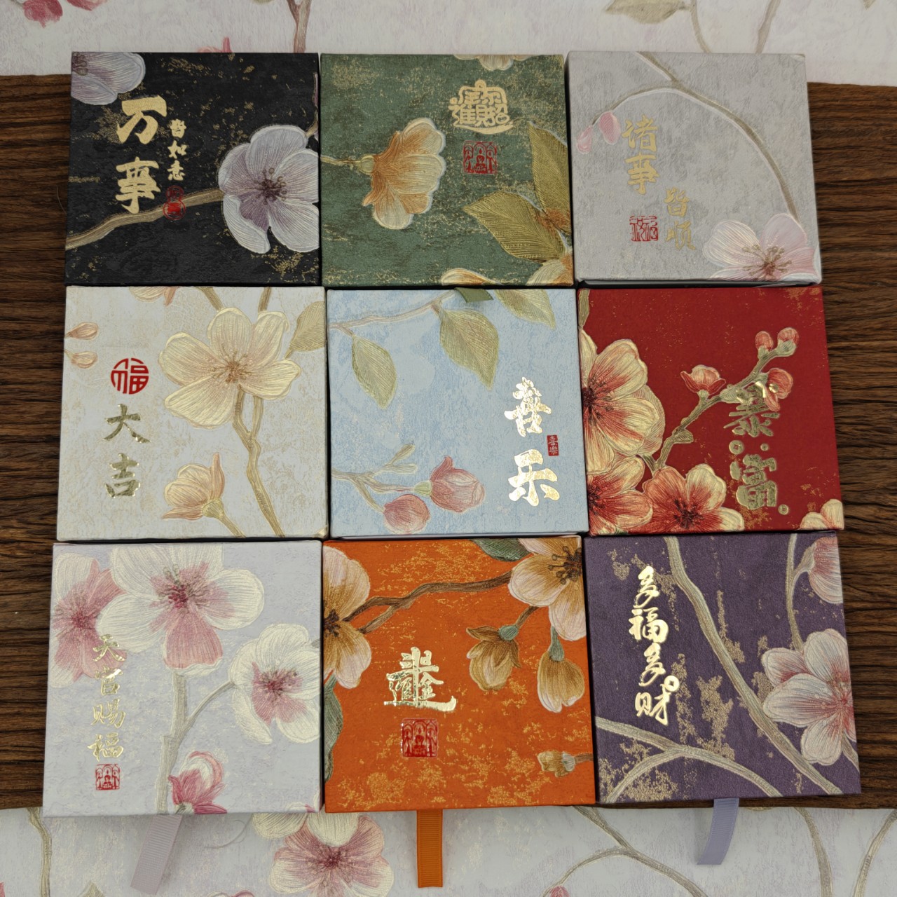 繁花首饰包装盒佛珠手串文玩天地盖礼品盒仿锻精美珠宝饰品收纳盒