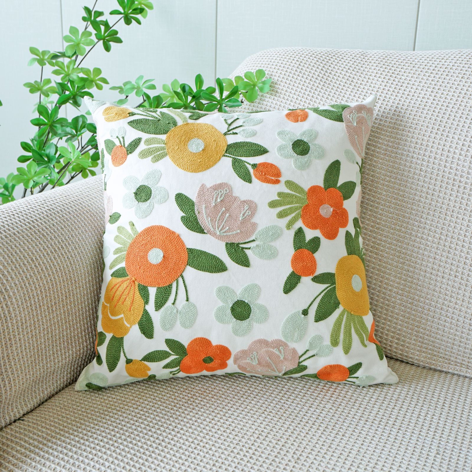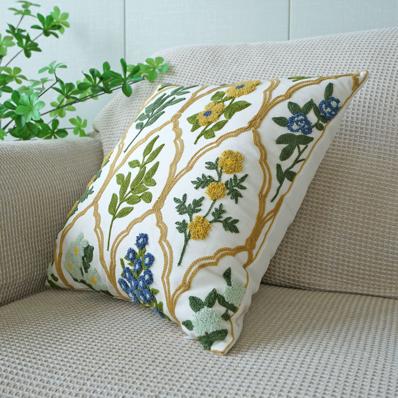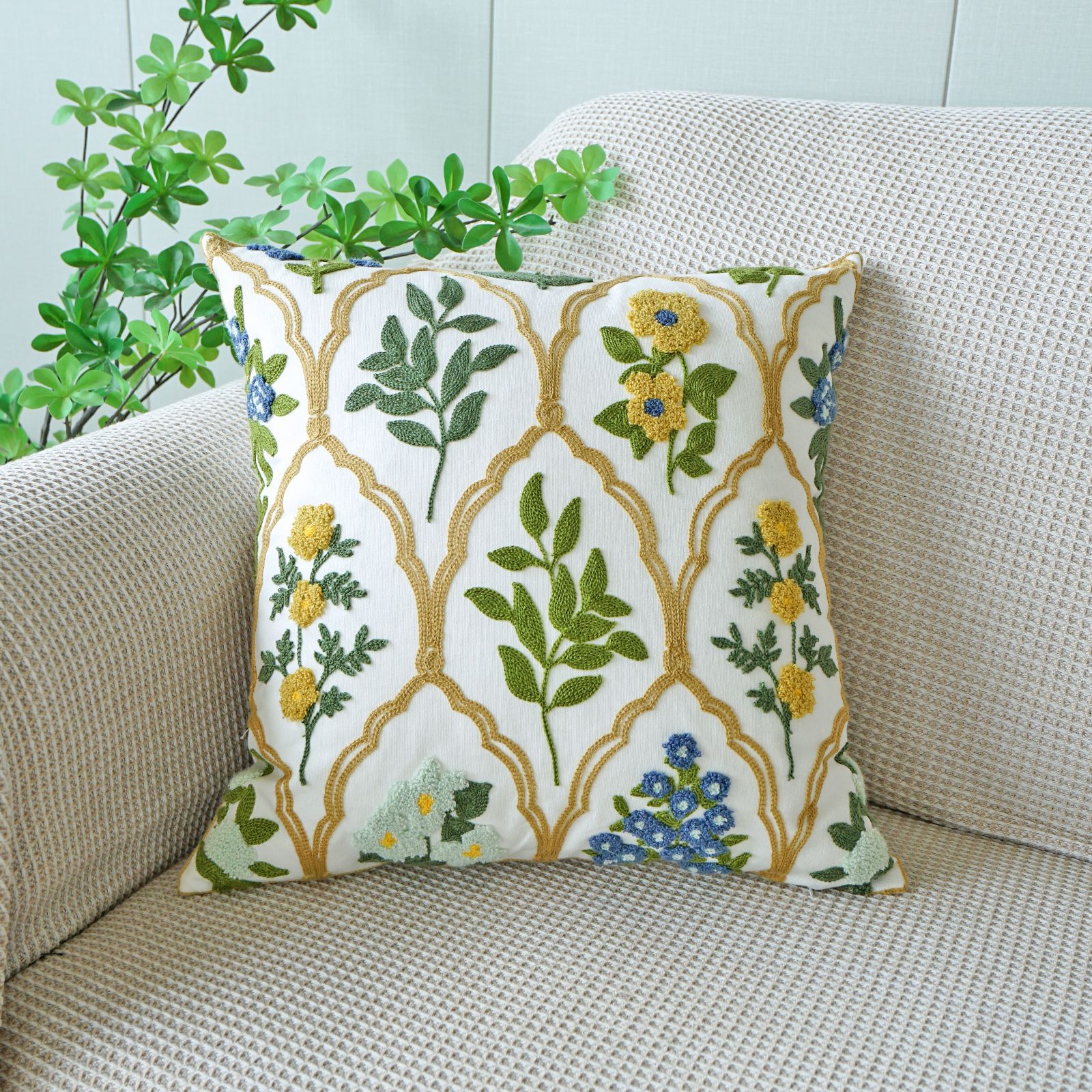 人気の春の枕カバー花と草の刺繍リネン素材アメリカン春ソファ装飾枕カバーには芯は含まれません
