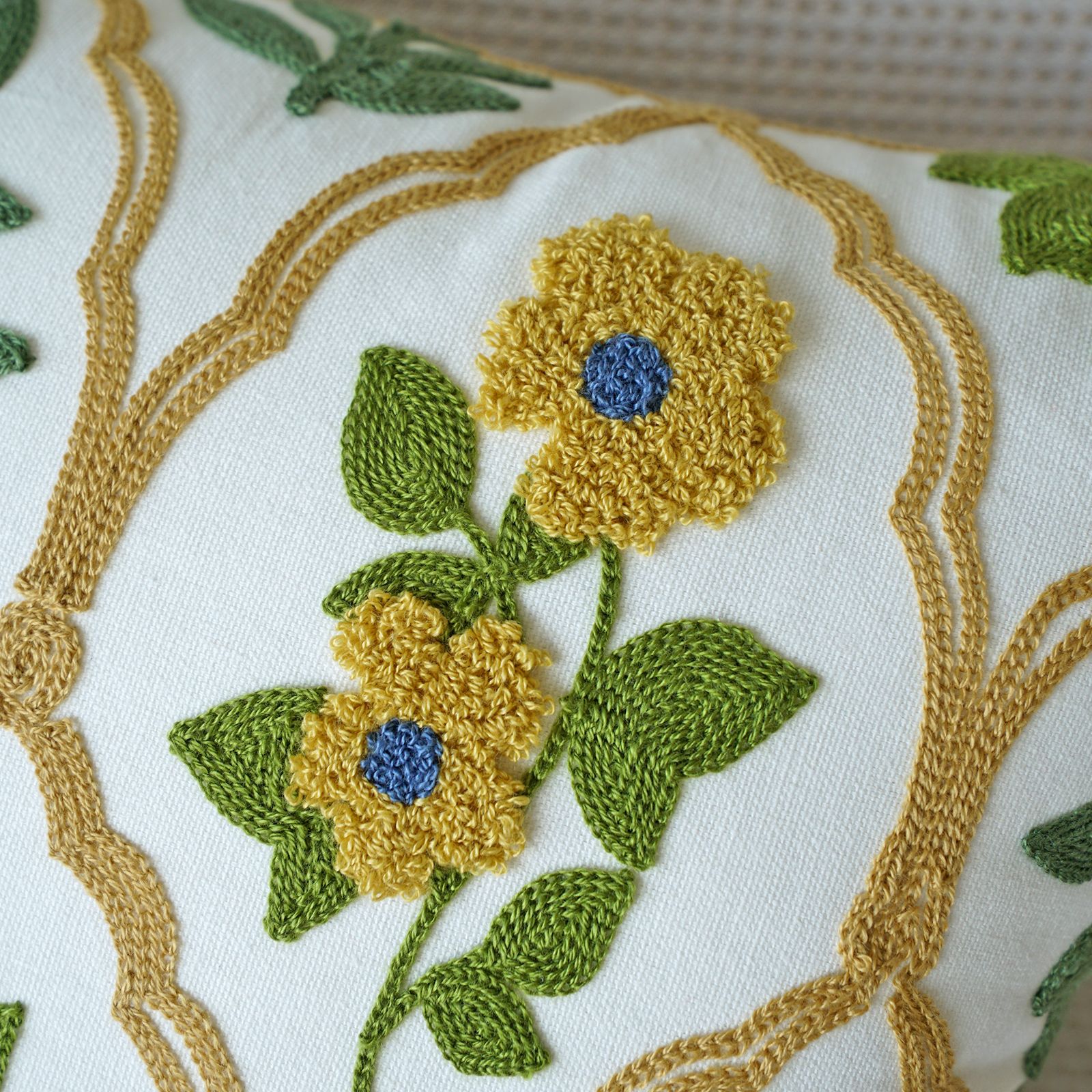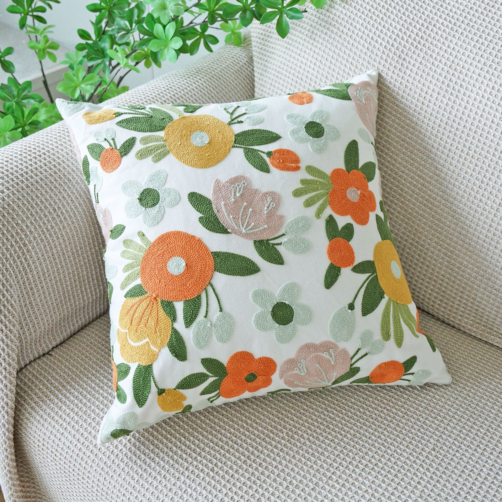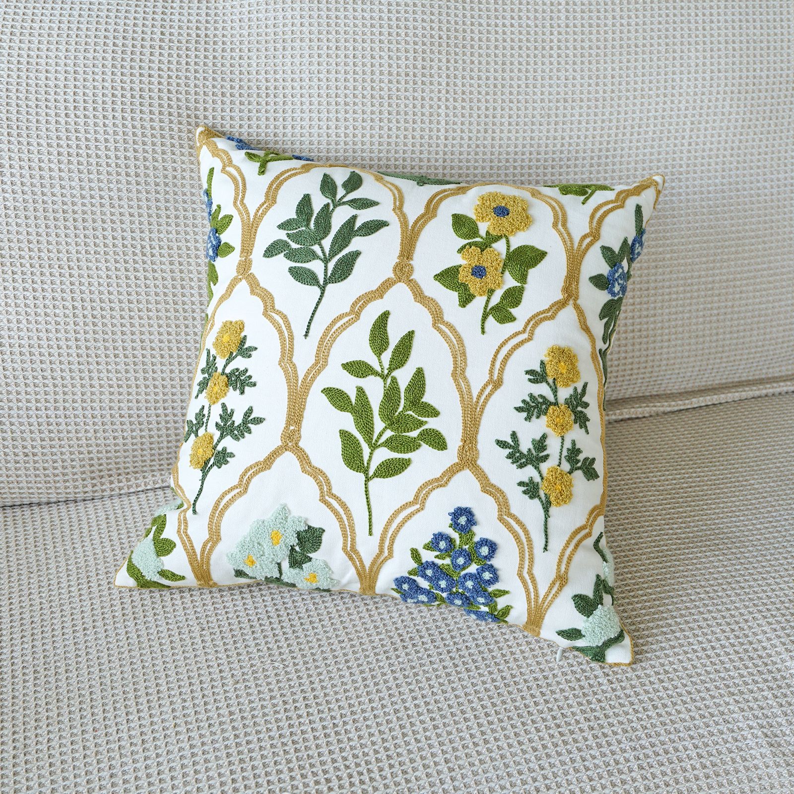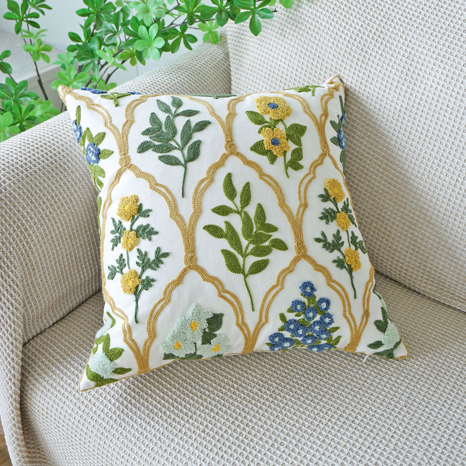 人気の春の枕カバー花と草の刺繍リネン素材アメリカン春ソファ装飾枕カバーには芯は含まれません