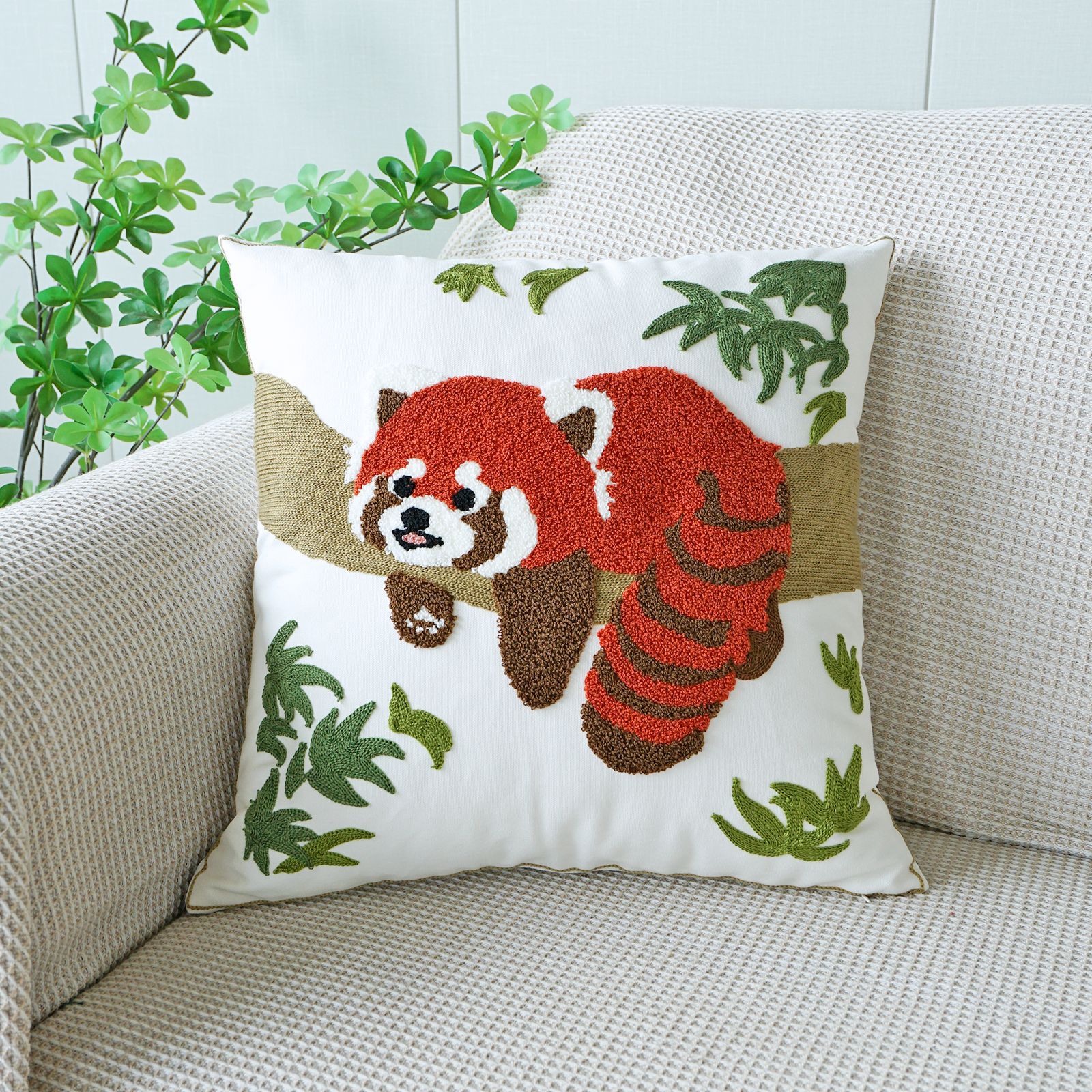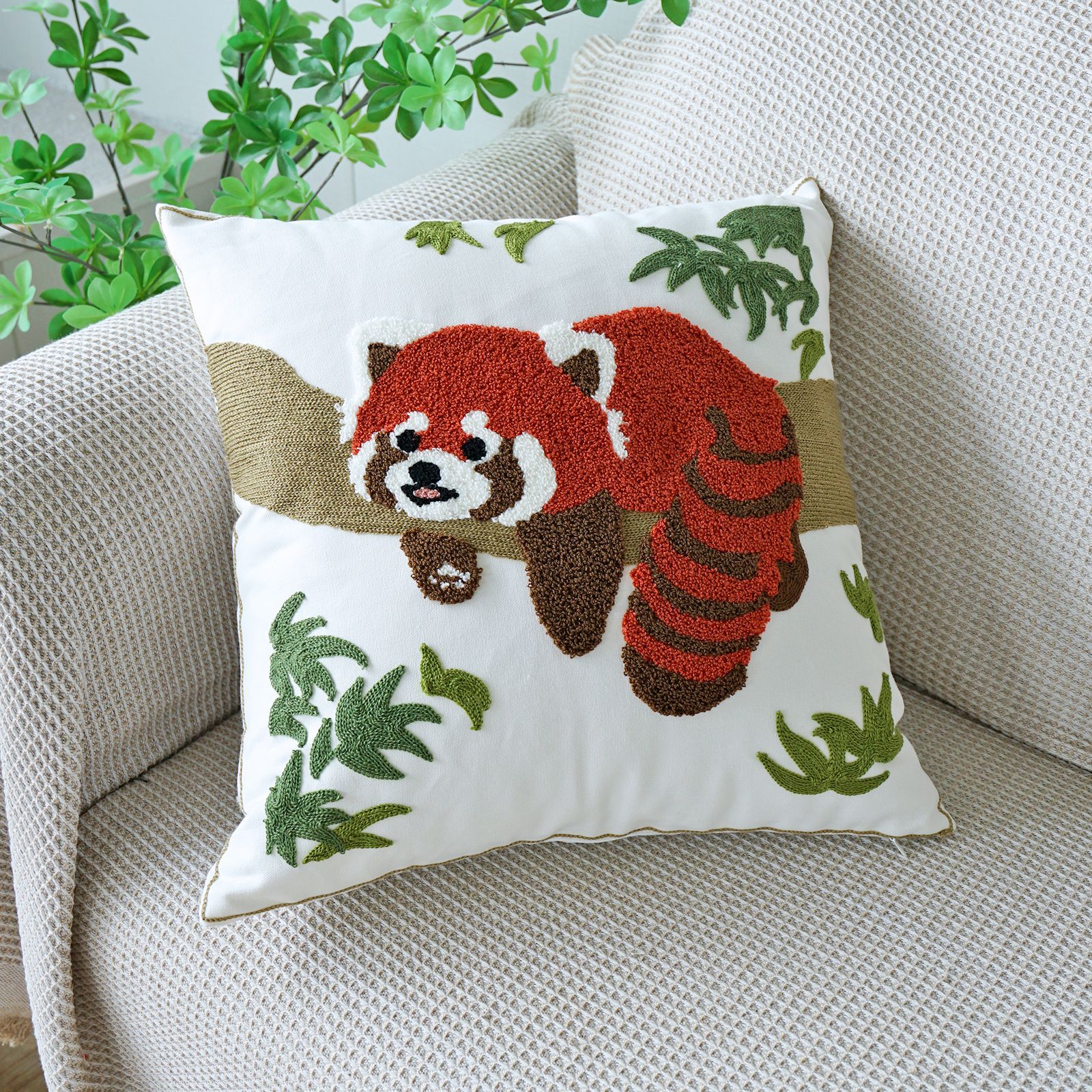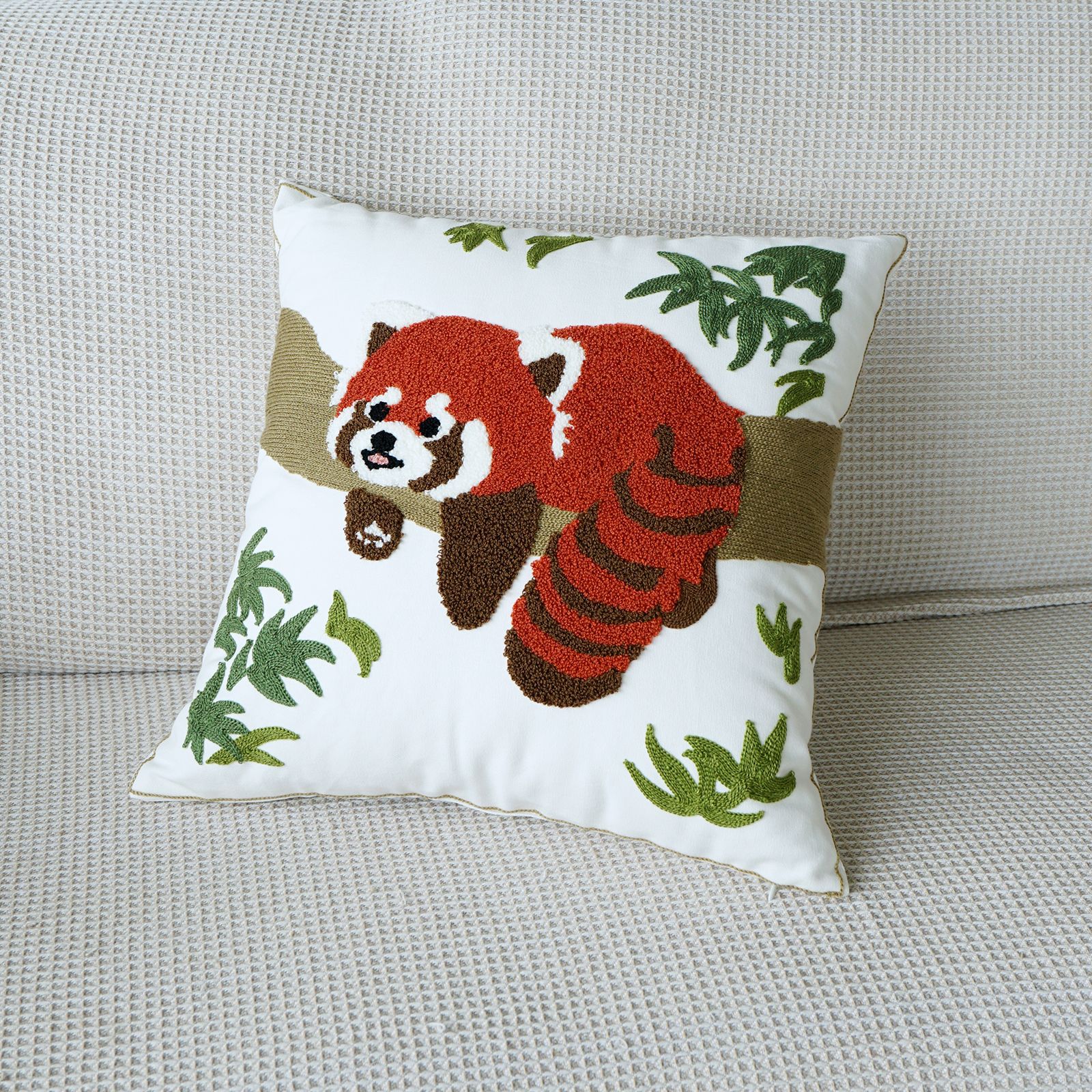 毛巾绣花朵抱枕套现代简约沙发床头靠枕套小熊猫图案办公室靠垫套