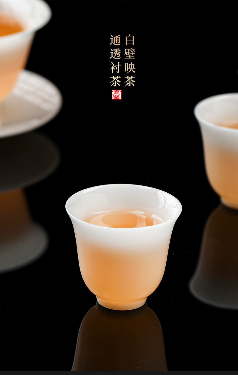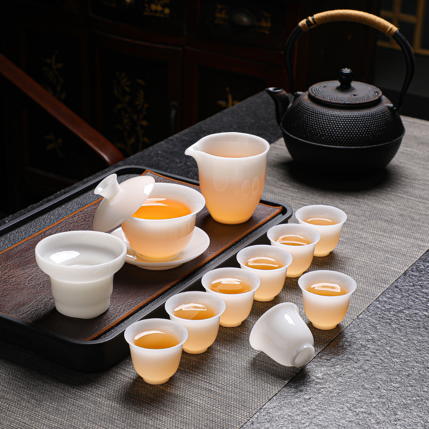 Yijian Pu Jade Ice種類手描き蓮茶セット光沢のある羊脂翡翠カンフー茶セット商業家庭用ライト高級お土産