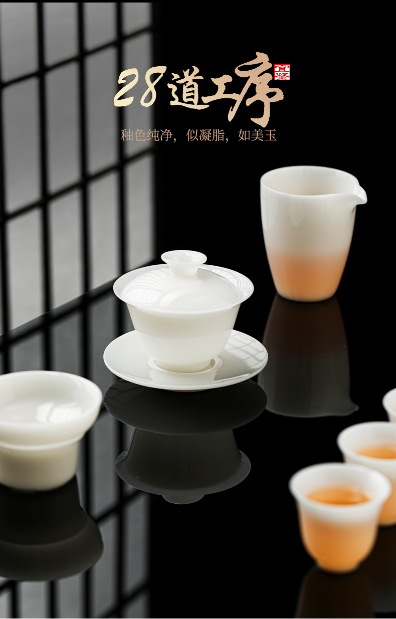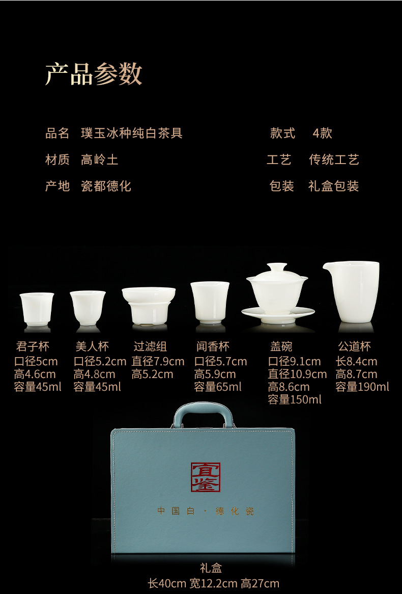 宜鑑氷種羊脂玉茶器セット青山韻徳化白磁工夫茶器商用家庭用軽豪華プレゼント