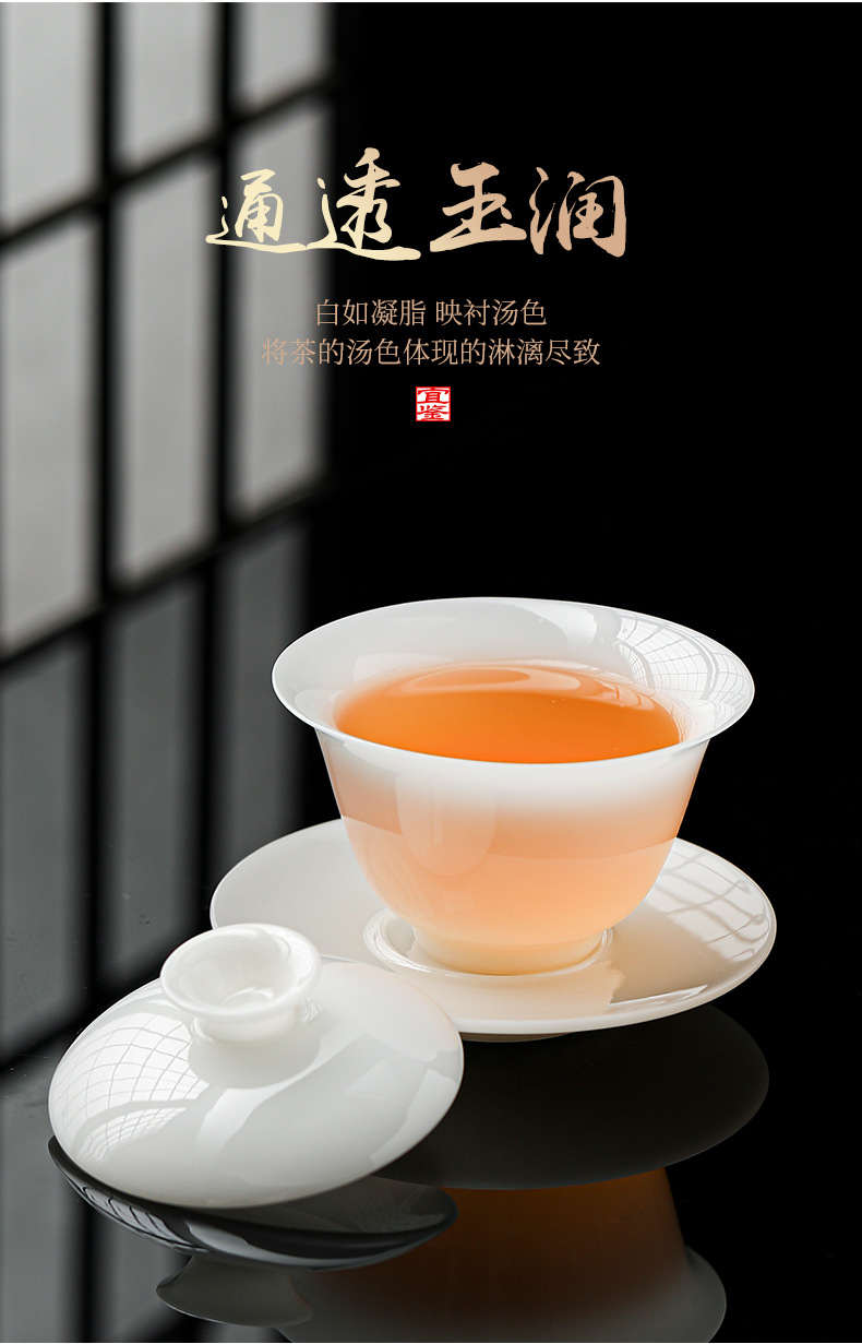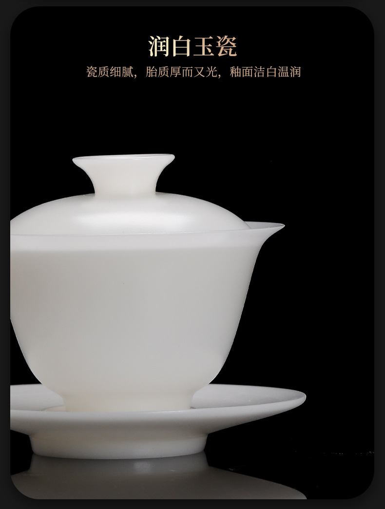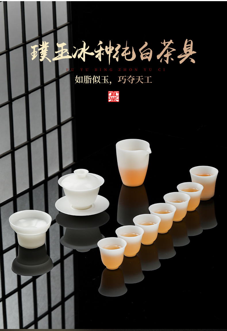 宜鉴璞玉冰种茶具套装无争亮光羊脂玉瓷功夫茶具团建年会轻奢礼品