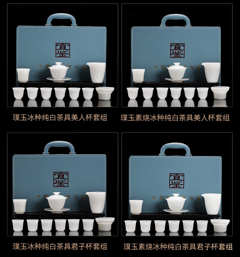 宜鑑氷種羊脂玉茶器セット青韻素焼徳化玉磁器工夫茶器家庭用商用お土産