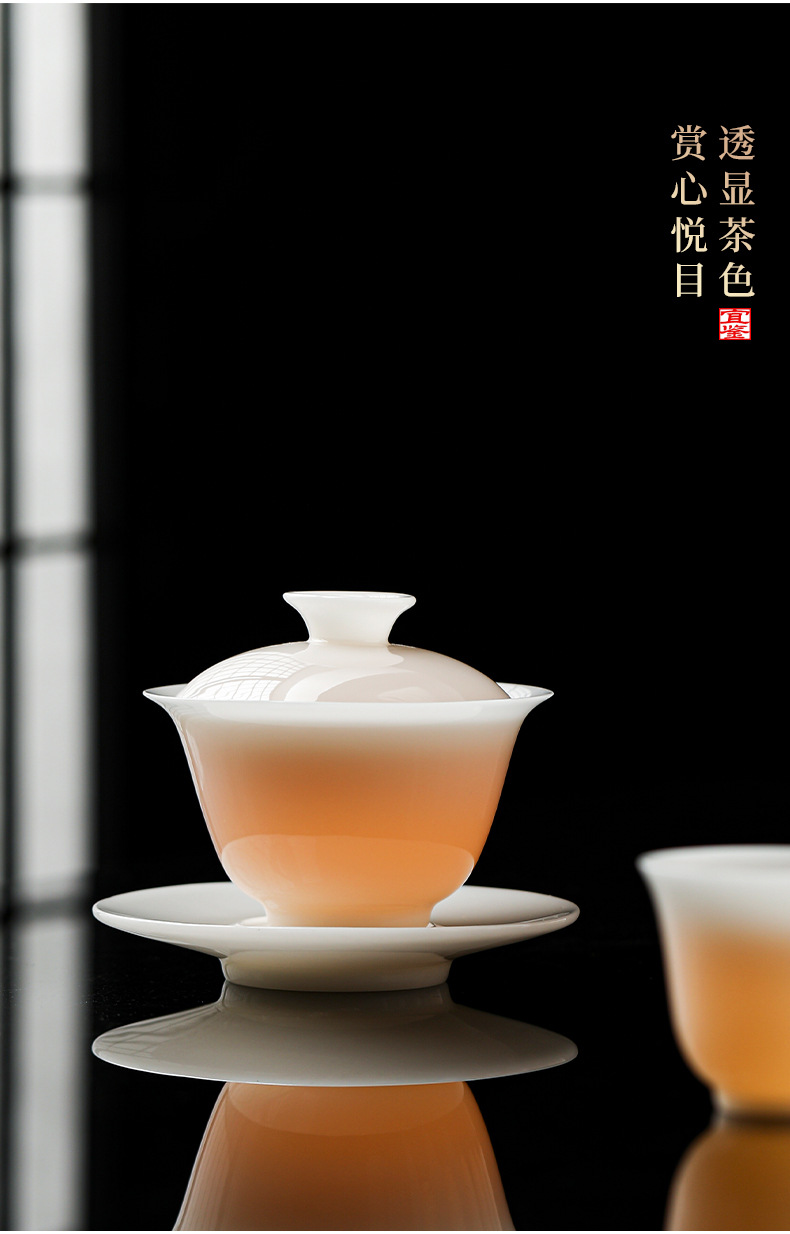 ハイエンドの氷翡翠磁器ティーセット、自宅のリビングルーム、オフィスの来客用、ティーホバーカバー、ボウル、ビジネスティーカップ