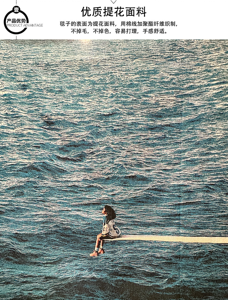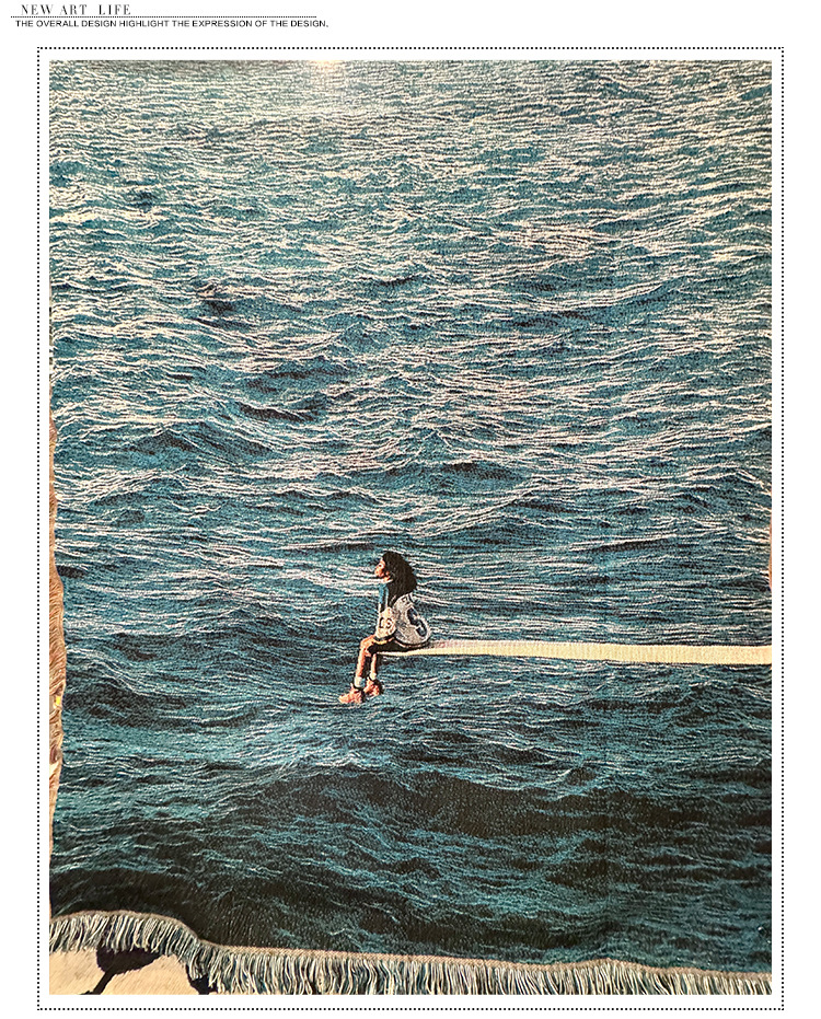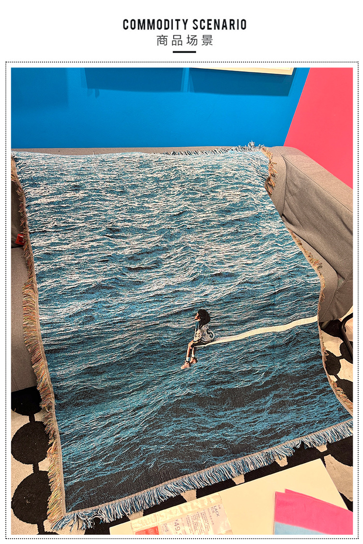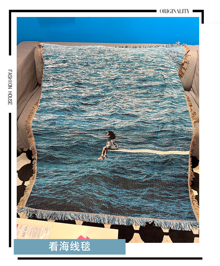 大海风景针织线毯挂毯上墙装饰毯沙发毯床上盖毯棉线挂毯装饰画