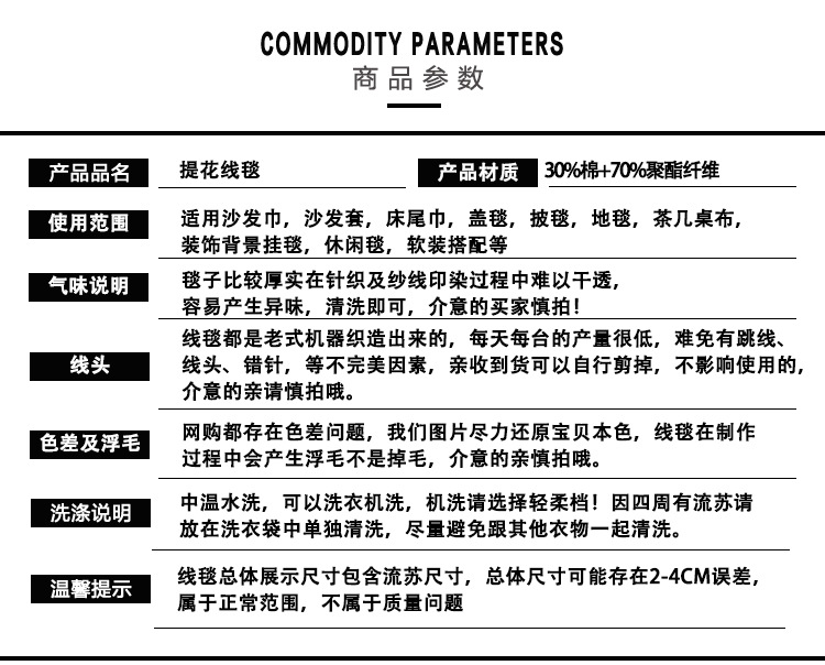 尺寸规格 130*160cm(包含流苏),90*90cm(包含流苏)