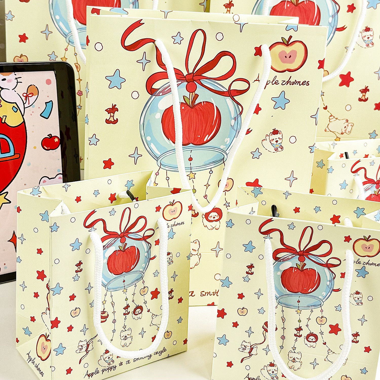 苹果风铃小狗礼品袋ins收纳袋卡纸高颜值大手提袋礼物手拎加厚款