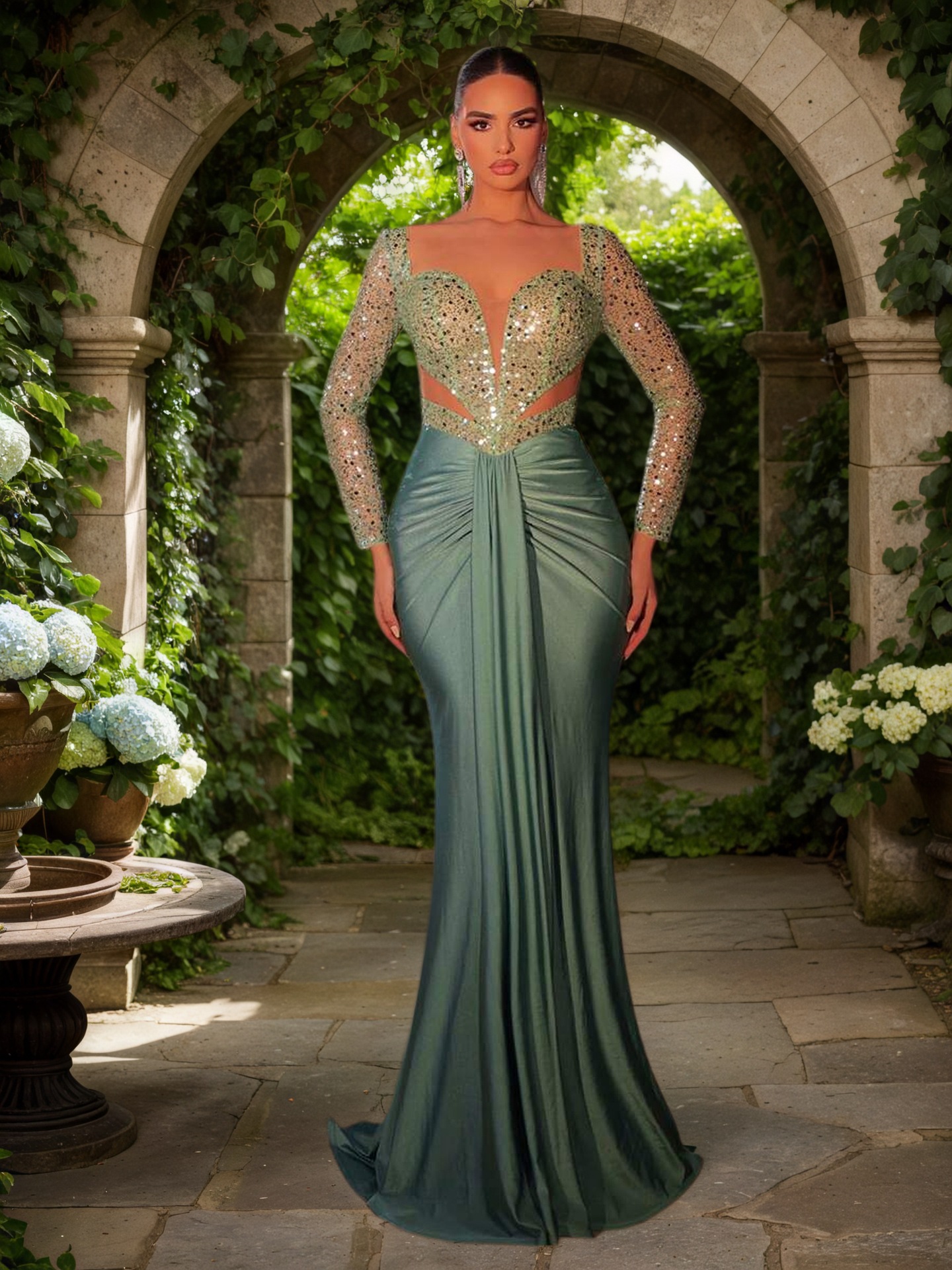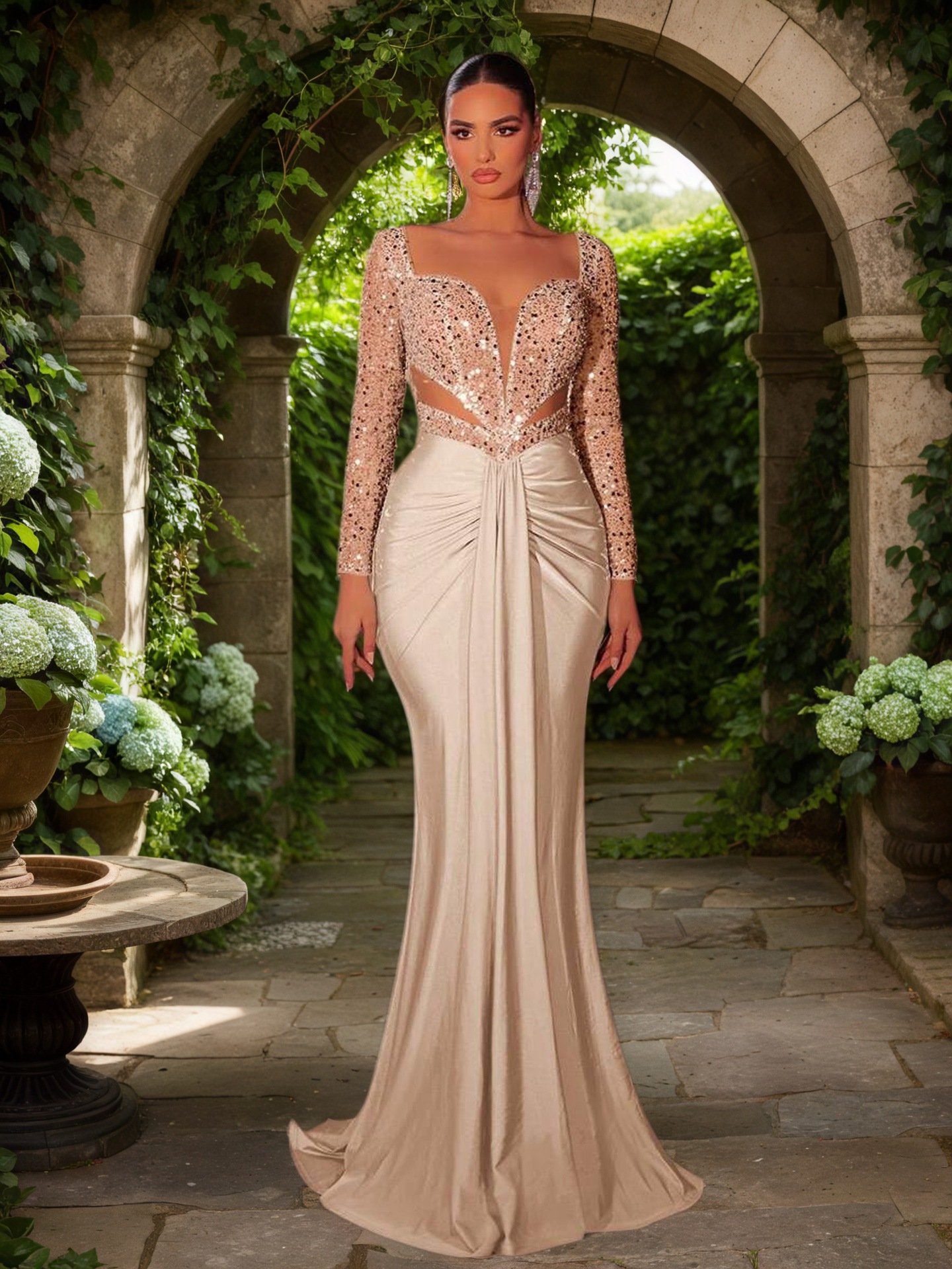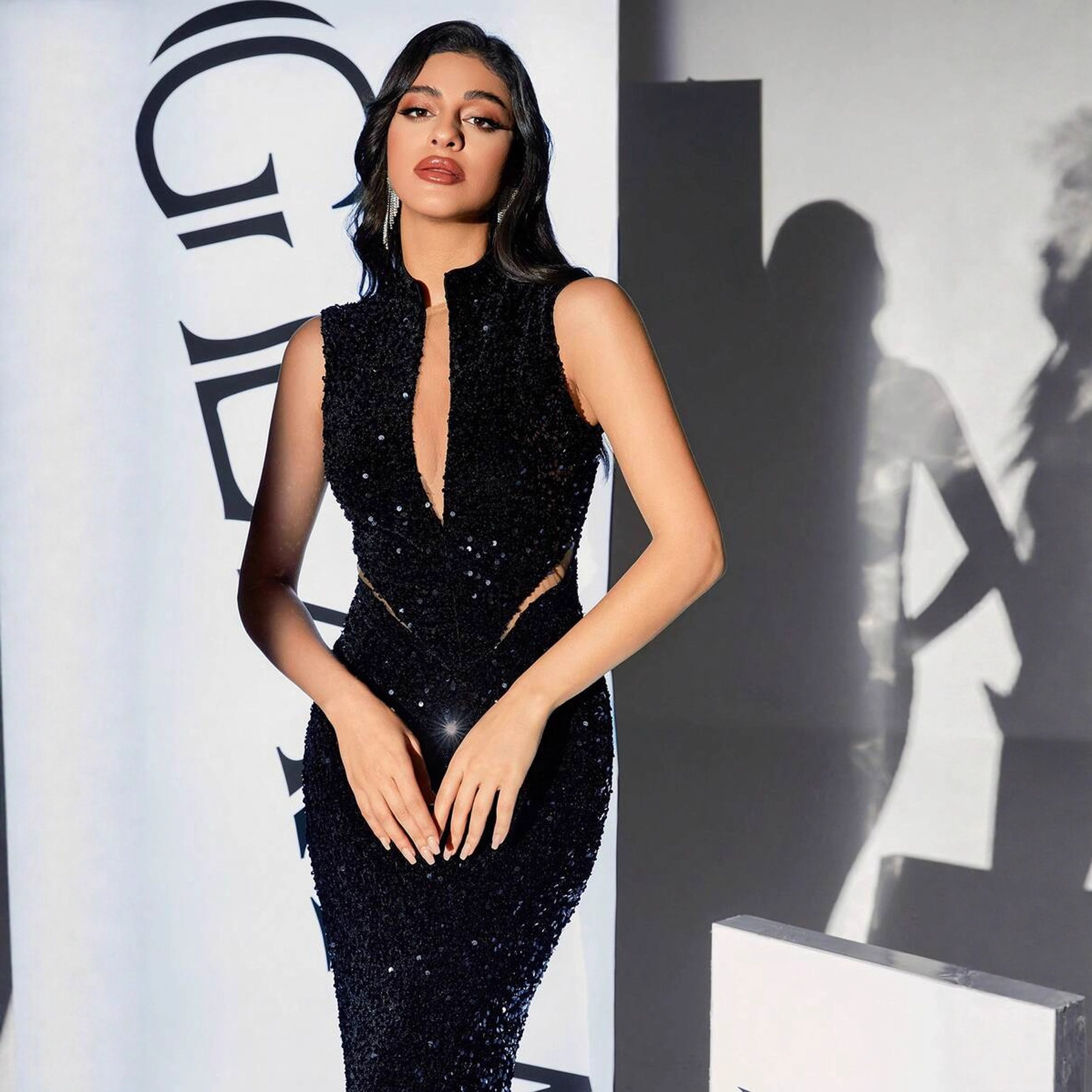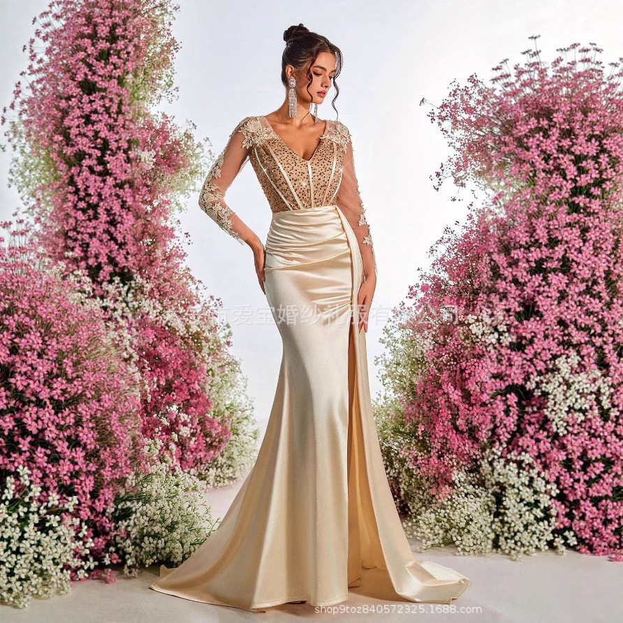 2025年春季欧美跨境亚马逊宴会长袖气质名媛年会主持人气场女王亮