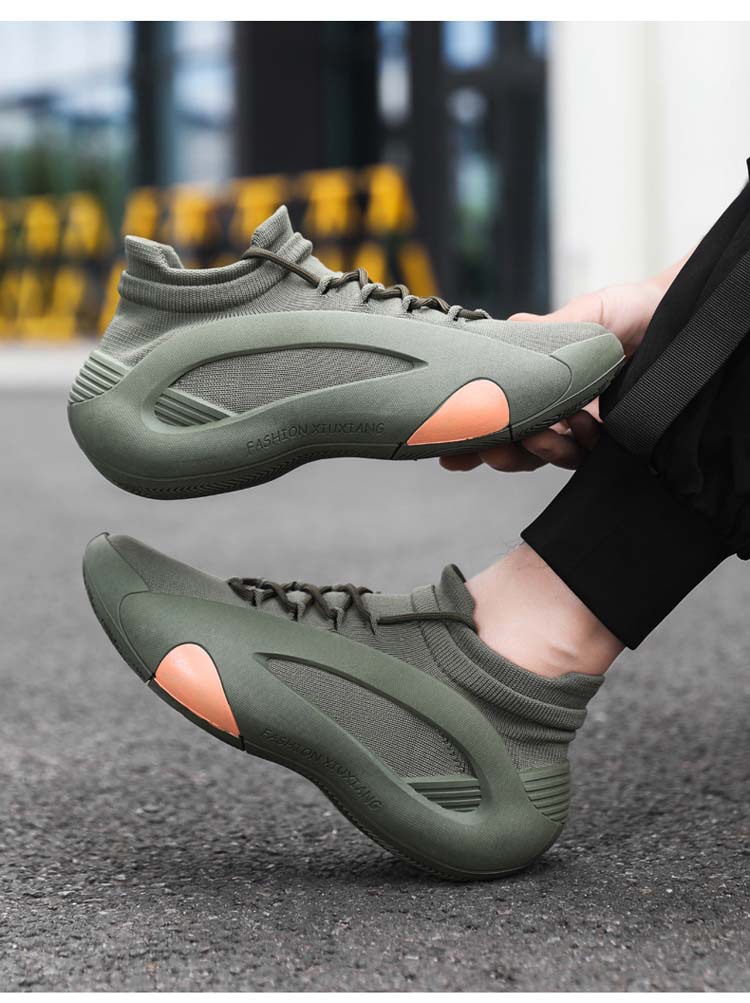 2025秋季透气飞织网面男鞋轻便新款织网运动袜口休闲篮球鞋运动鞋