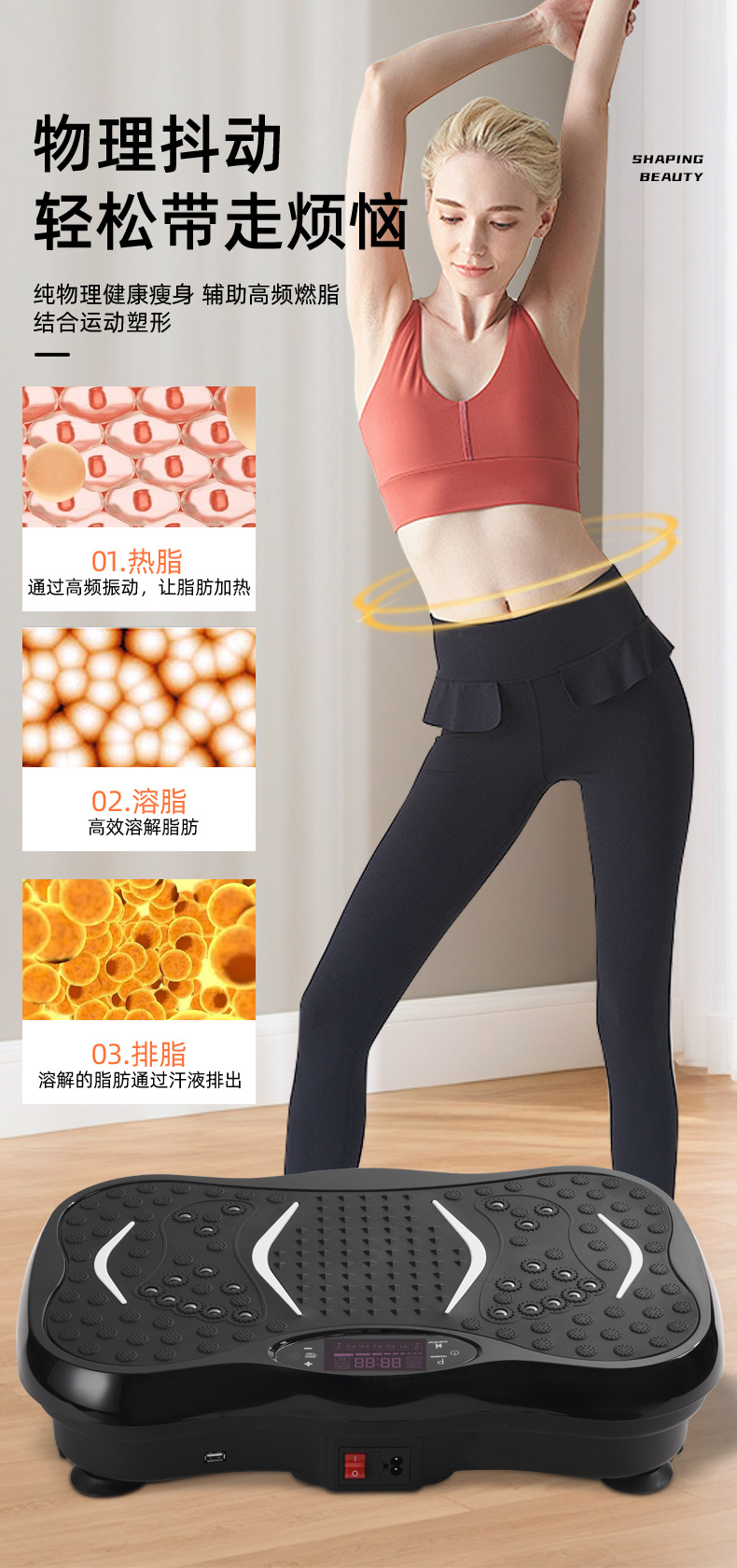 跨境甩脂机律动懒人站立式抖抖塑身机家用迷你全身震动甩肉按摩器