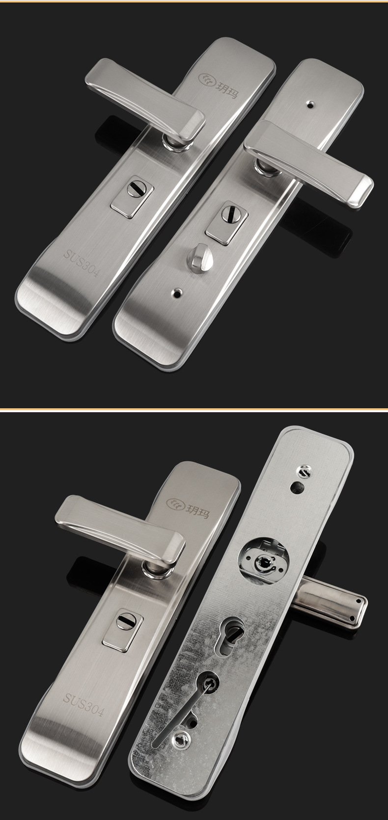 玥玛加厚304不锈钢防盗门锁家用通用型门锁C级铜锁芯防撬门锁批发