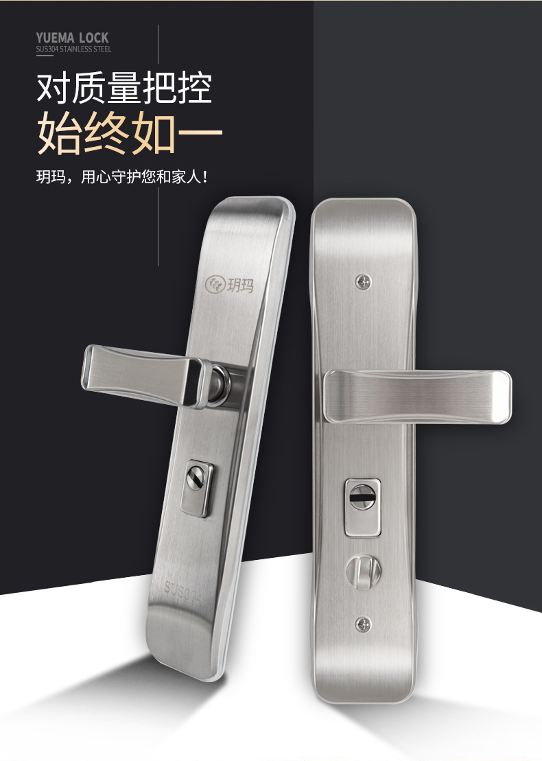 玥玛机械门锁不锈钢防盗门锁家用通用型把手入户门锁面板锁具批发