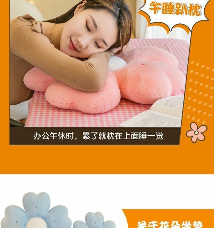 可爱兔毛花朵坐垫抱枕办公室靠垫腰靠毛绒玩具客厅沙发花瓣坐垫女