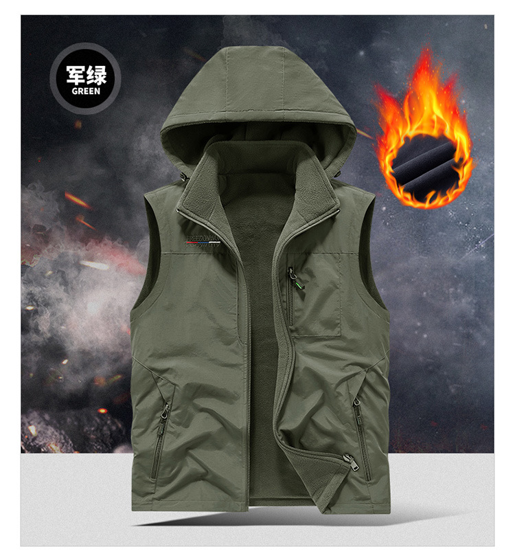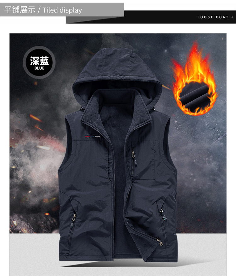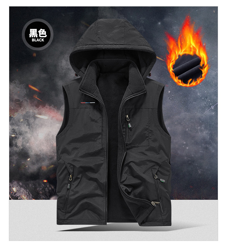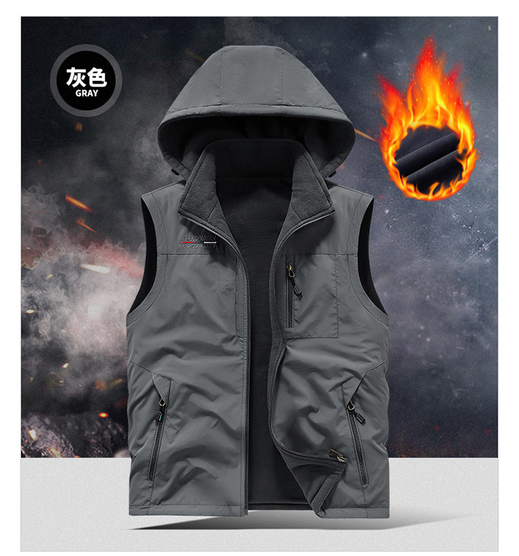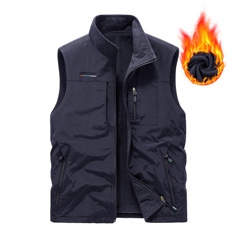 秋冬ベルベットは男性の中高年アウトドアスポーツ馬甲速乾多ポケットの両面に国境を越えた保温肩を着る