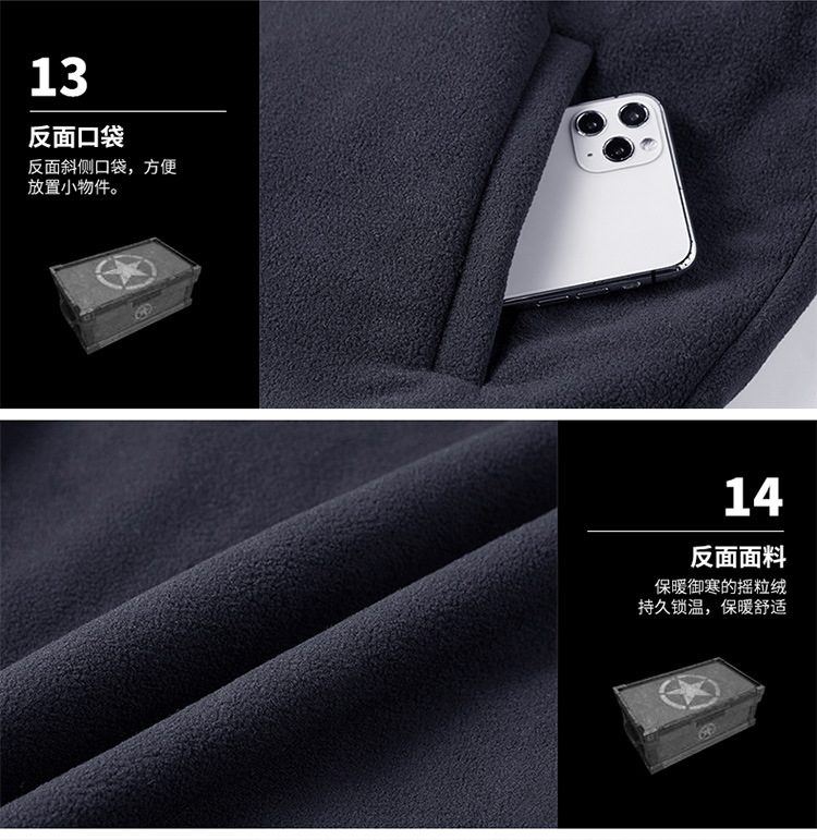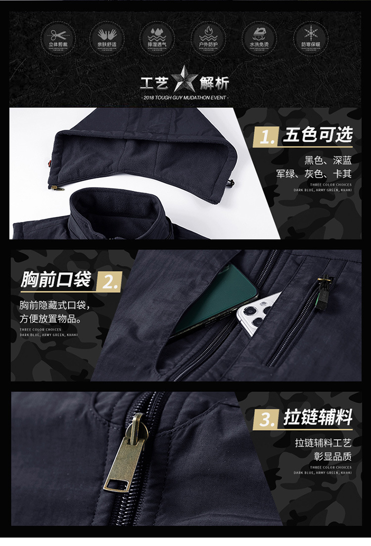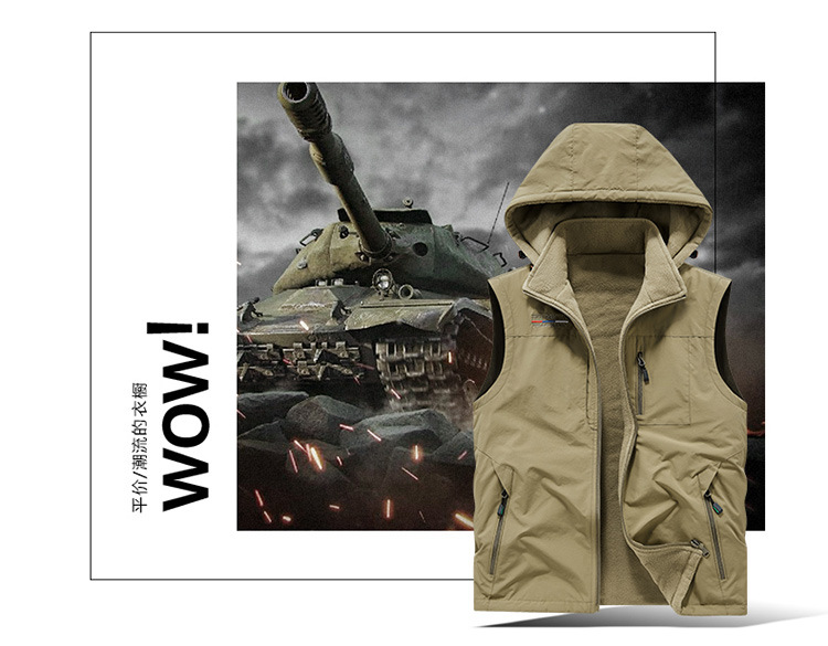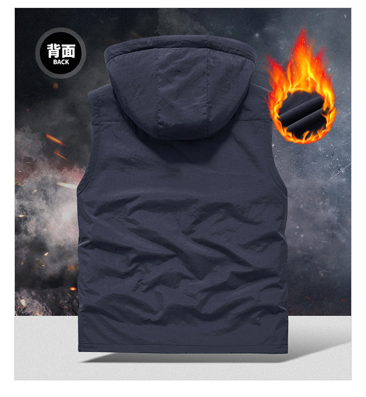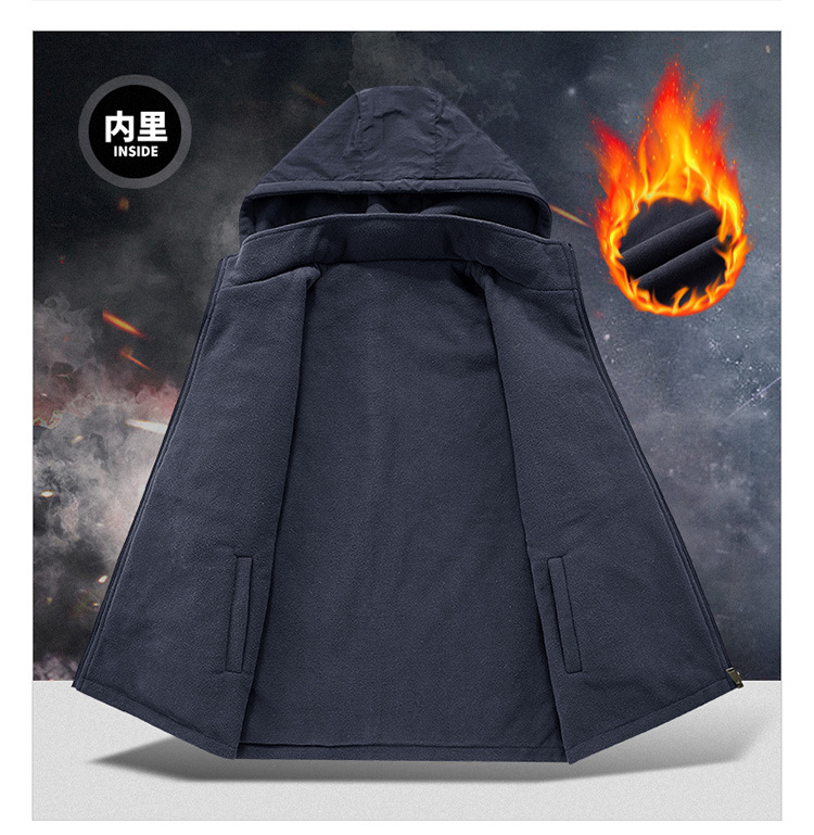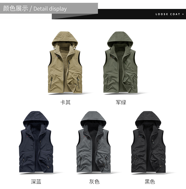 秋冬ベルベットは男性の中高年アウトドアスポーツ馬甲速乾多ポケットの両面に国境を越えた保温肩を着る