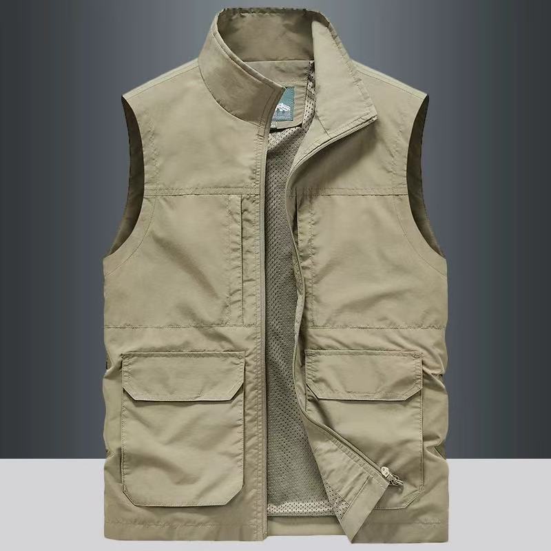 春秋用薄手中高年男性向けゆったりパパベスト、多ポケットカジュアルベスト、作業用ベスト、写真撮影・釣り用ベスト