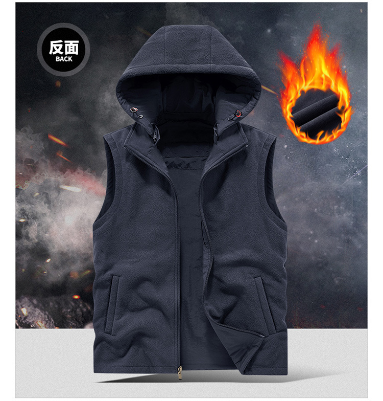 秋冬双面穿马甲男士户外运动抓绒背心摇粒绒坎肩加绒加厚连帽马夹