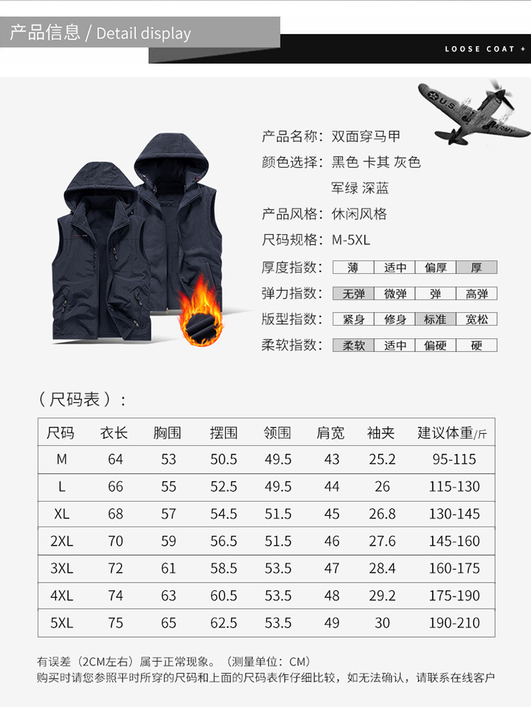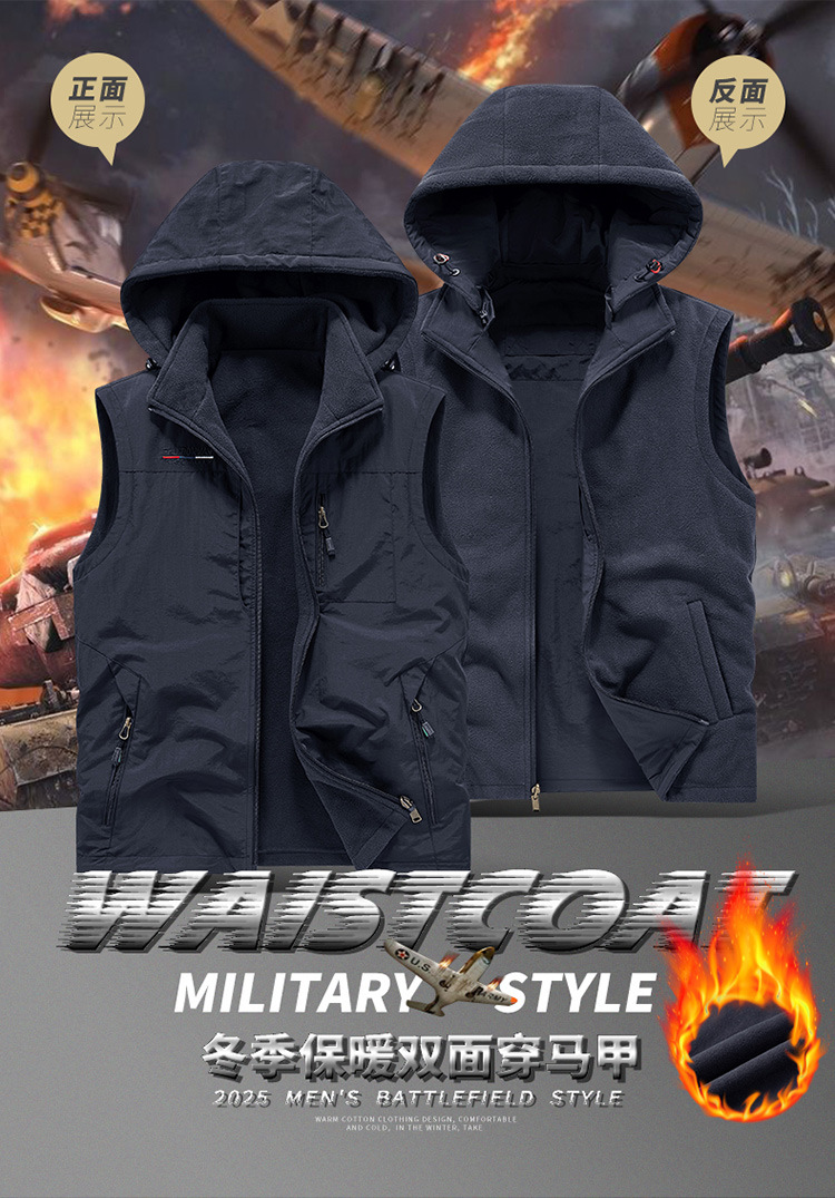 秋冬季新款户外加绒工装马甲大码双面穿爸爸装立领休闲多口袋马甲