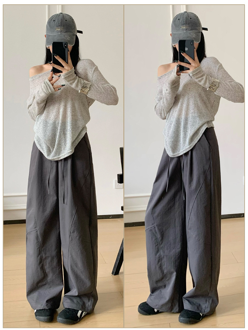 美式复古侧边抽皱蝴蝶结运动裤女春秋宽松显瘦直筒裤休闲阔腿卫裤