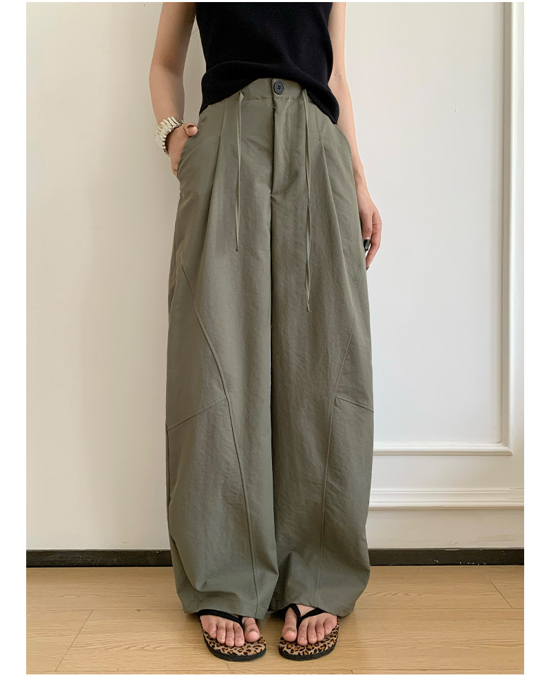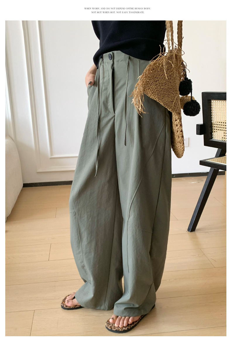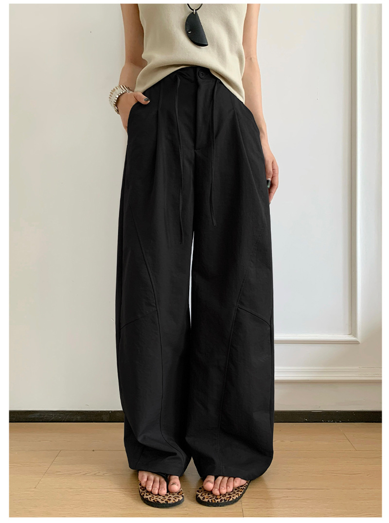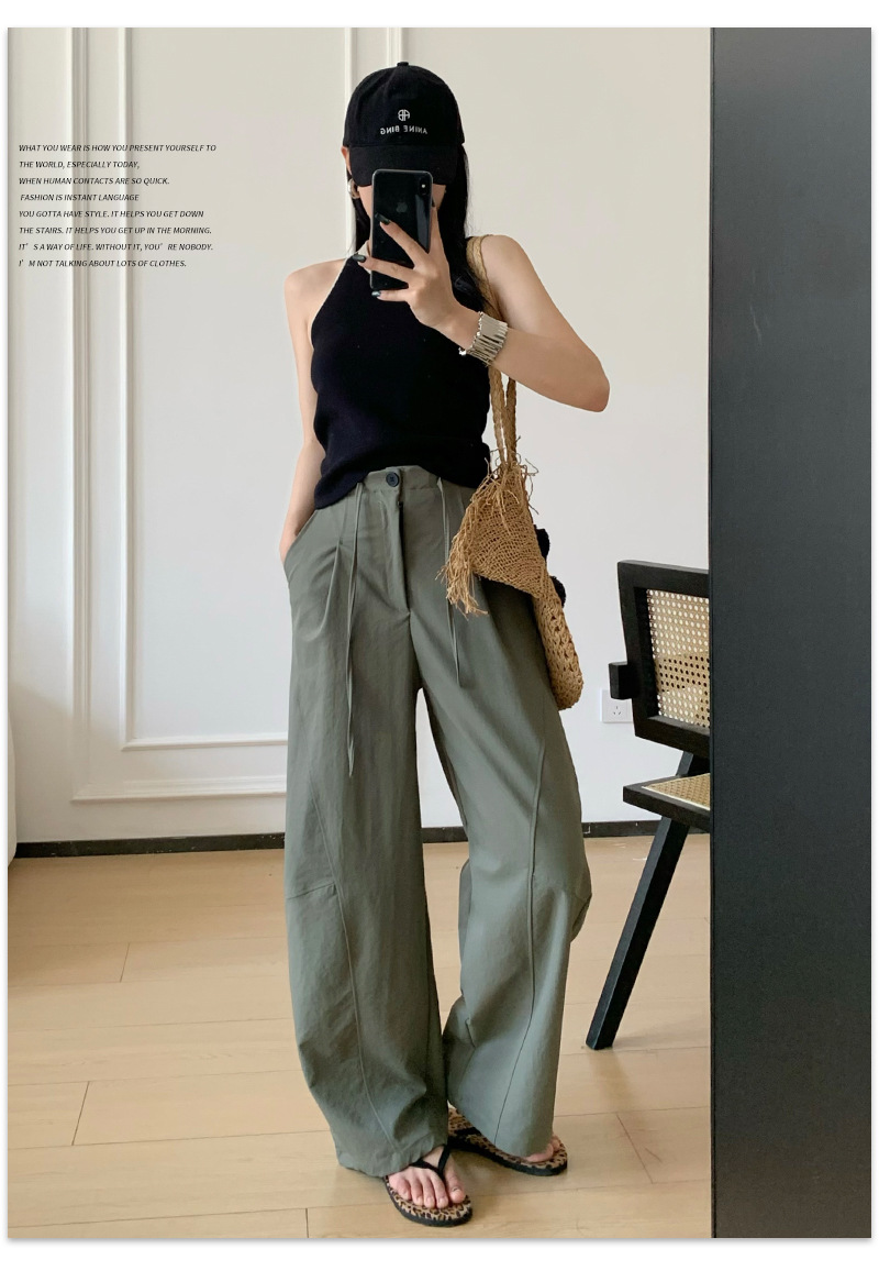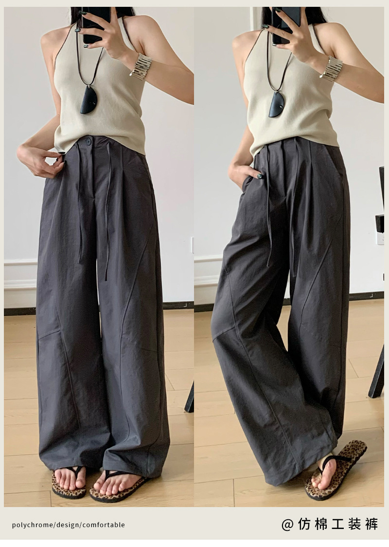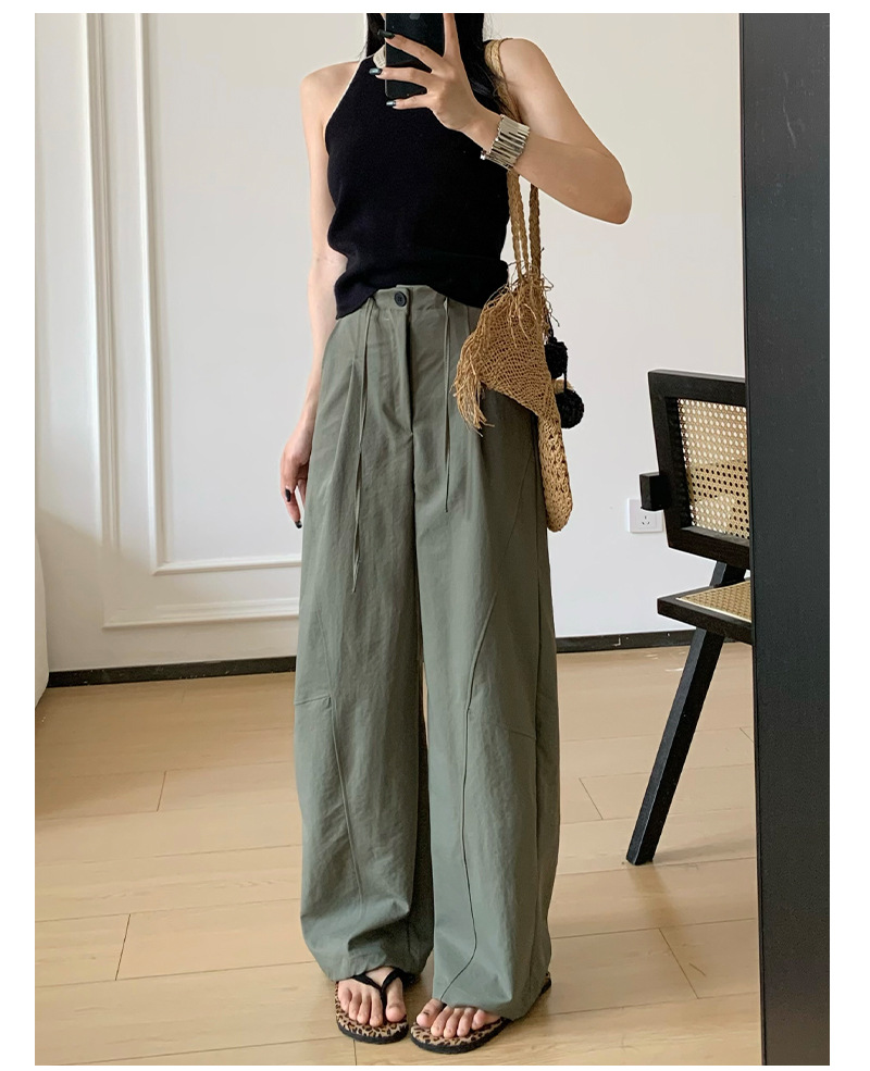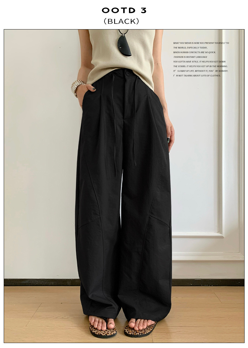 アメリカンスタイルの速乾性ボタンダウンワークウェアワイドレッグパンツ女性用夏薄手ルーズハイウエストドレープパラシュートツーウェアスポーツパンツ