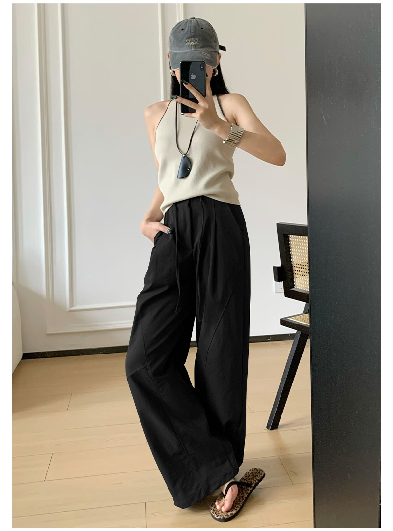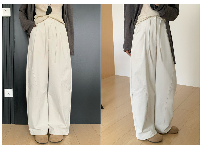 韩系慵懒松弛感糯米西装裤女春秋高腰显瘦宽松垂感直筒休闲阔腿裤