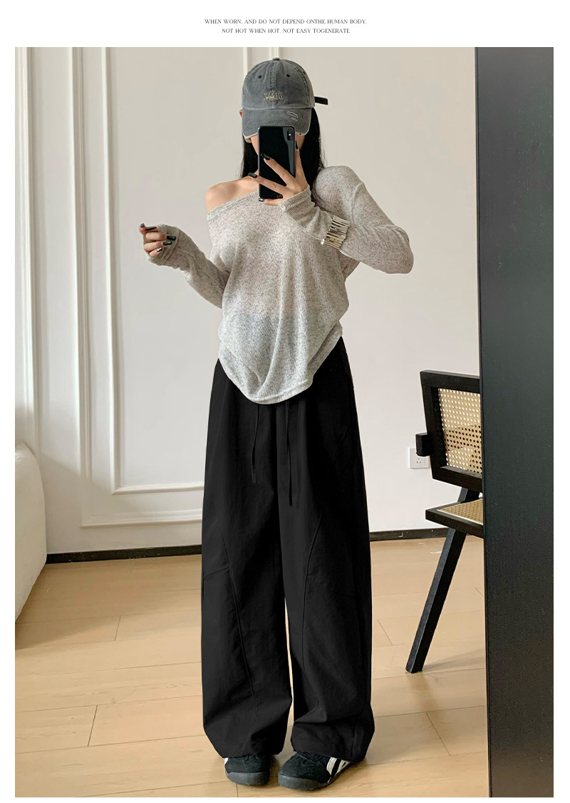 美式慵懒风弯刀裤女秋款高腰宽松垂感休闲拖地长裤显瘦直筒阔腿裤