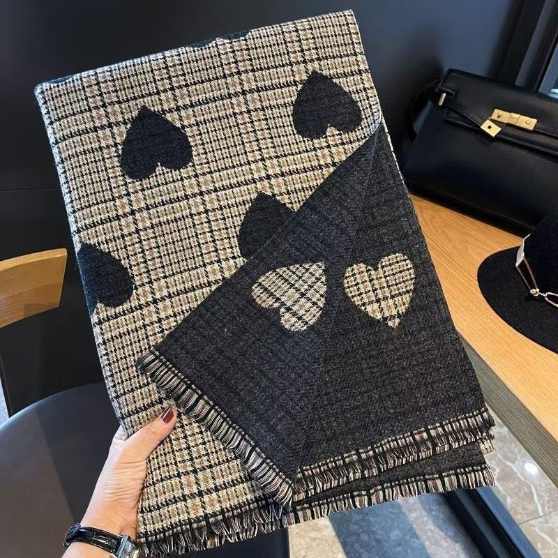 2025新款爆款仿羊绒围巾女爱心格子加厚保暖秋冬季办公室空调披肩