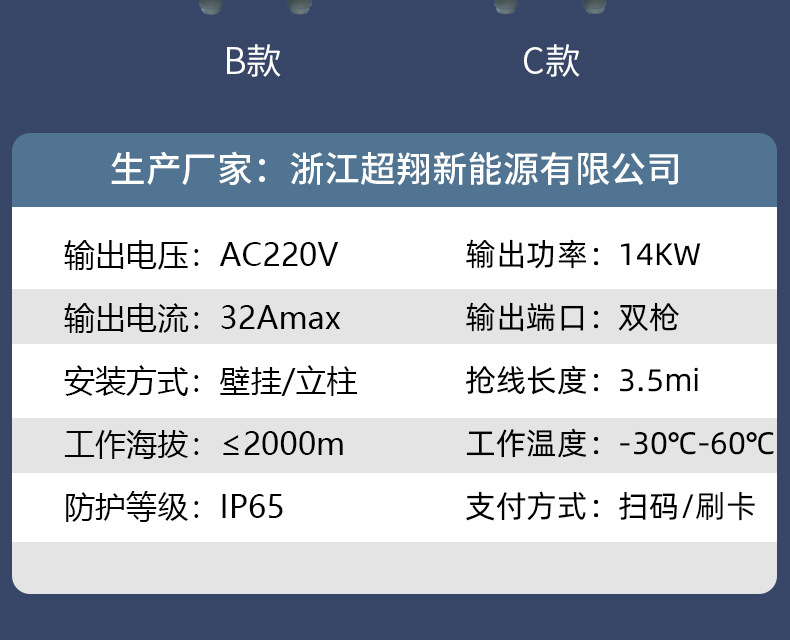 立柱式双枪充电桩 充电桩交流14kw 家用充电桩