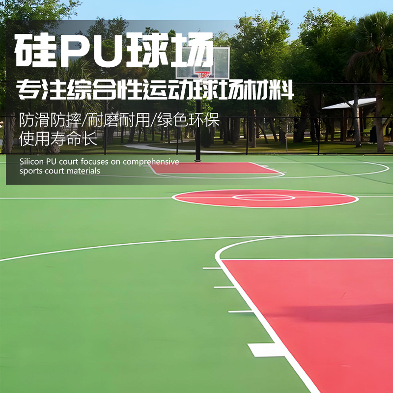学校硅pu篮球场 室内乒乓球场羽毛球场 8mm防滑耐磨弹性硅pu地面