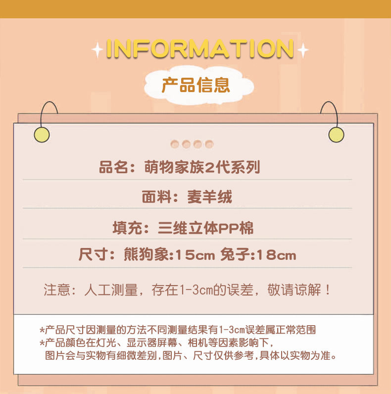 萌物家族二代毛绒玩具公仔布娃娃挂件装饰品安抚娃娃手机包包挂饰