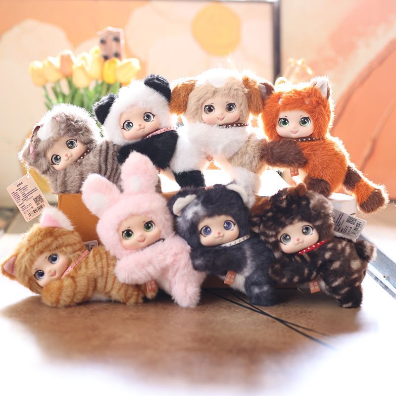 跨境萌物家族3代毛绒猫咪浣熊熊猫兔子小狗麋鹿玩偶挂件钥匙扣批