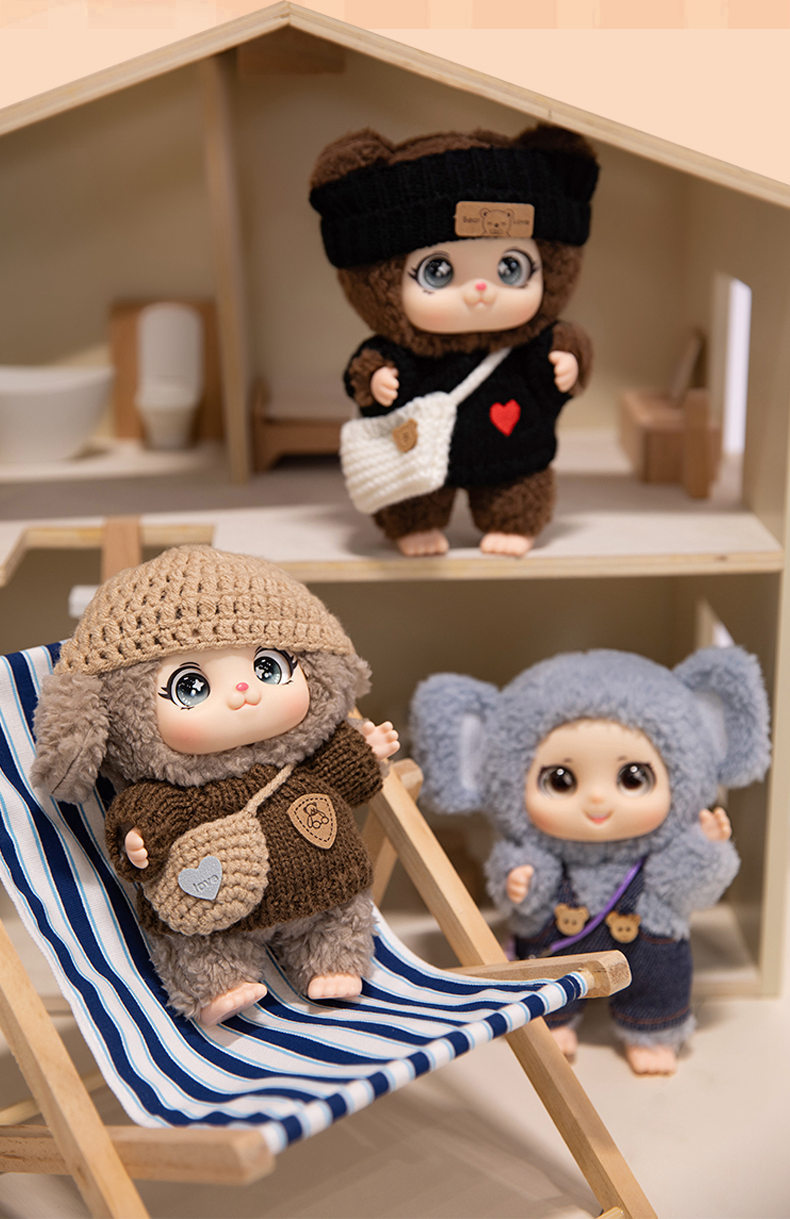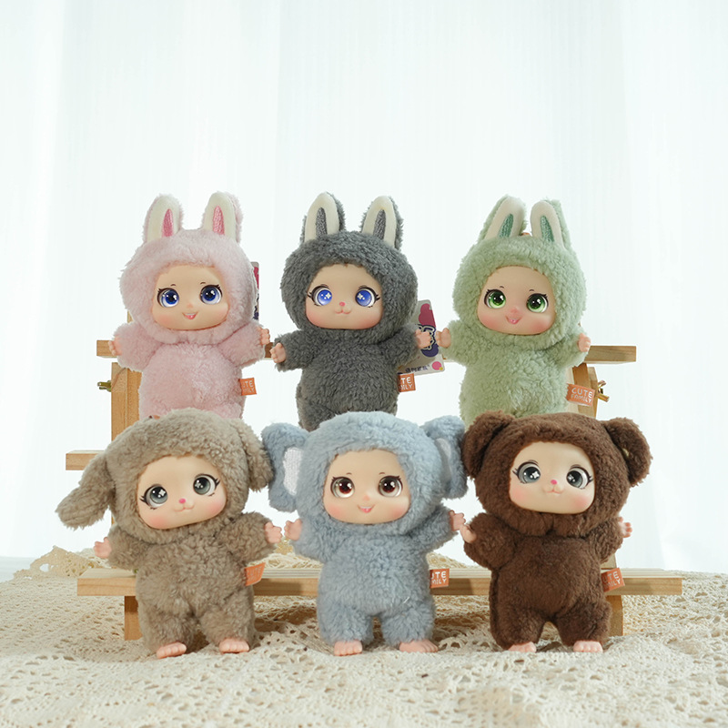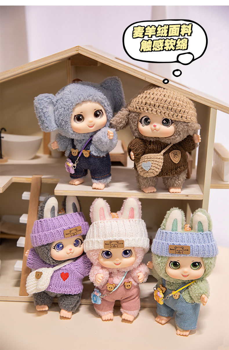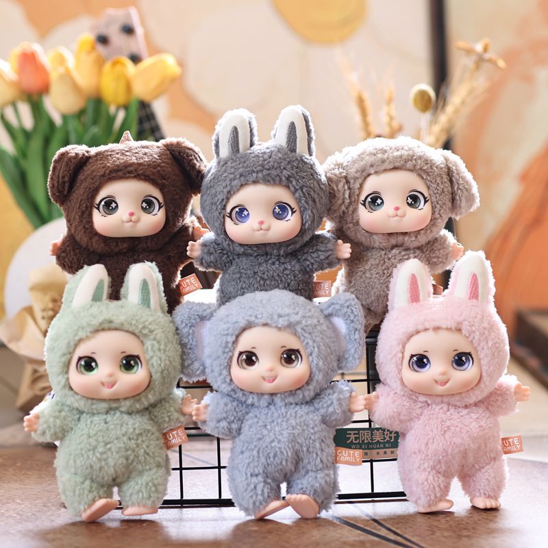 跨境批发安抚手偶mini小小动物萌物家族卧室毛绒搪胶脸玩偶装饰品