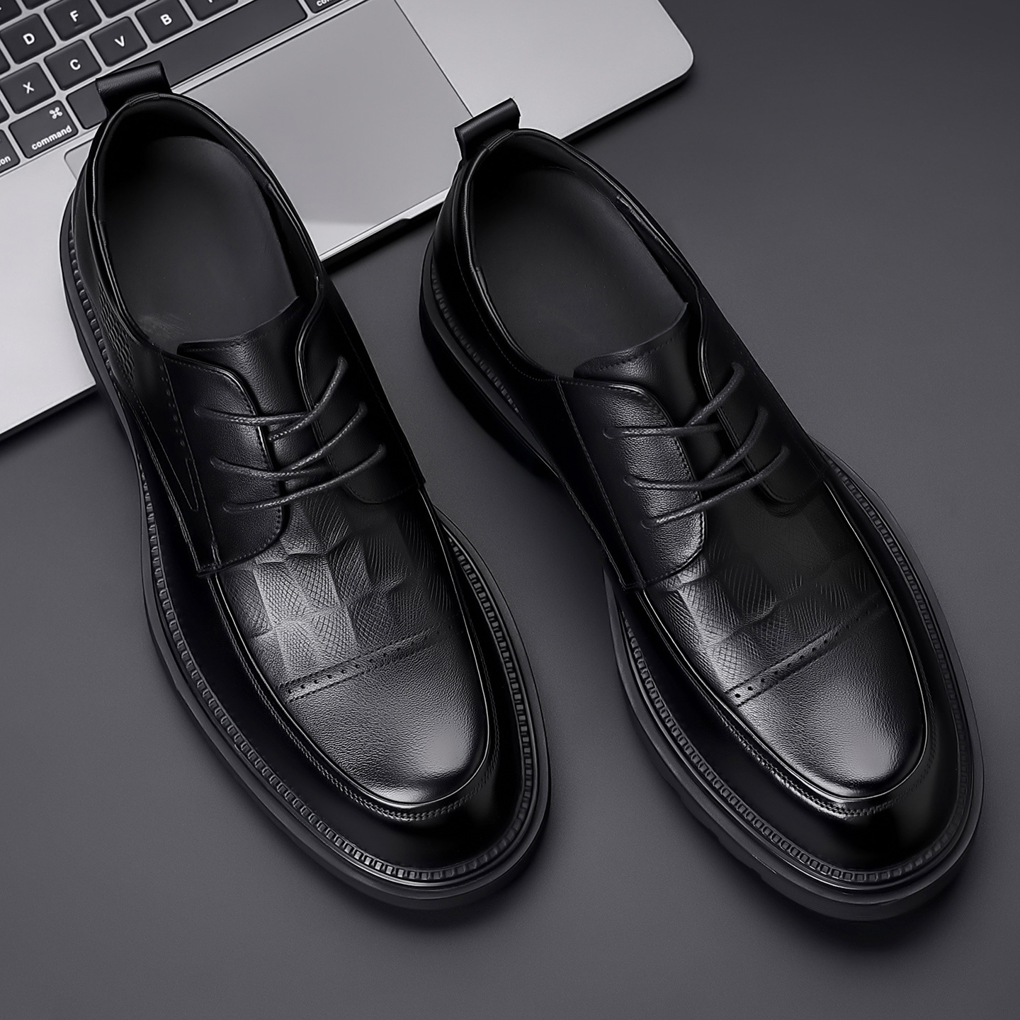 秋季高级感男鞋头层牛皮商务皮鞋男通勤真皮厚底休闲系带单鞋男士
