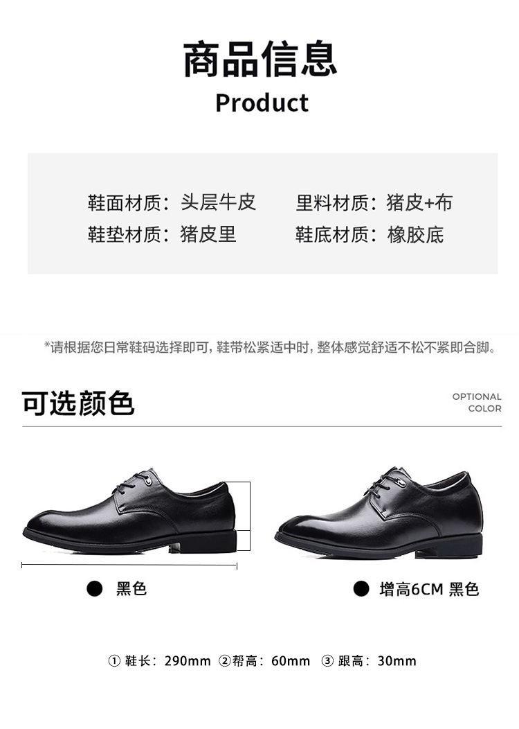 【真皮牛皮】真皮男士皮鞋商务正装内增高新郎结婚休闲上班鞋