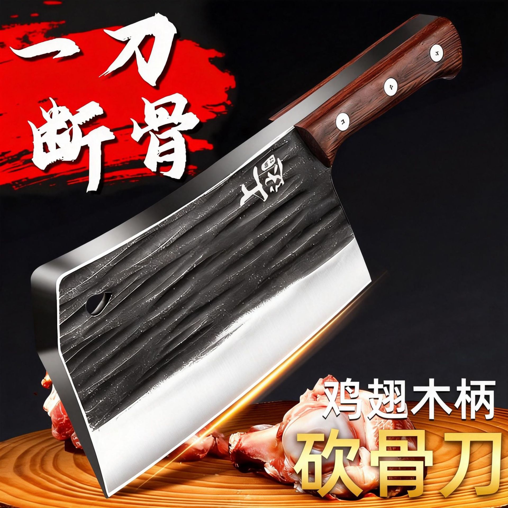 骨切りナイフで大きな骨を切ります。家庭用の骨切り刀です。