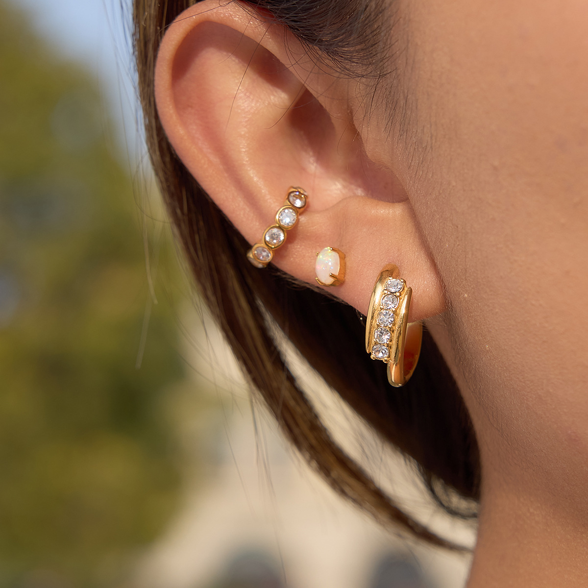 欧米のins風の経典の女性式のシンプルな組み合わせの18k金のステンレスの3層の耳のクリップの高級感の耳飾りのアクセサリ