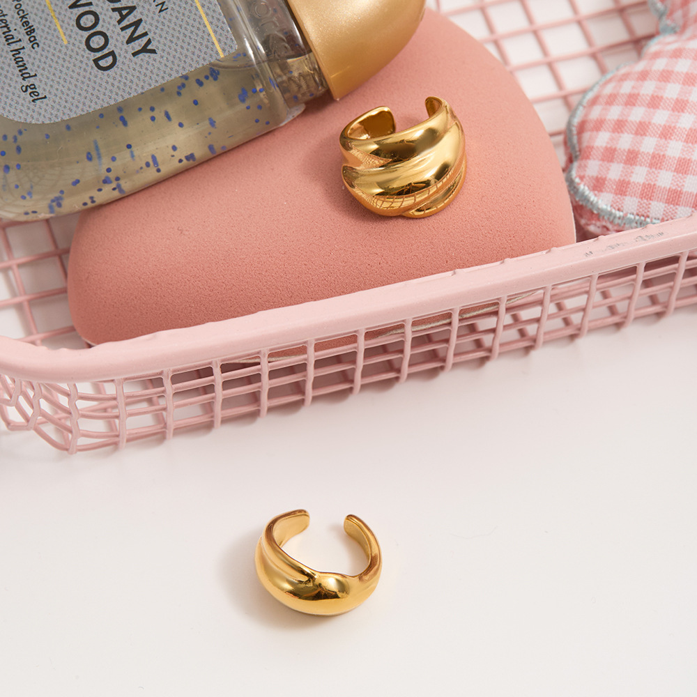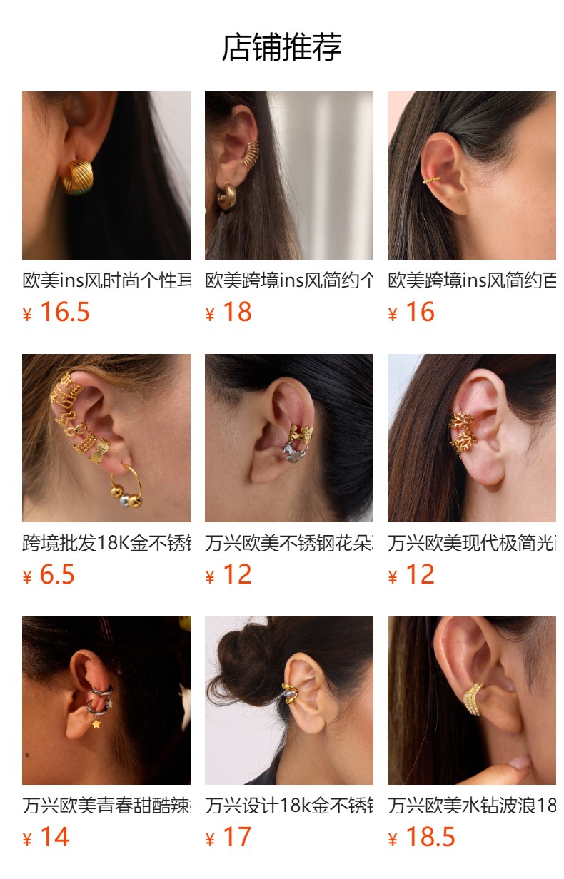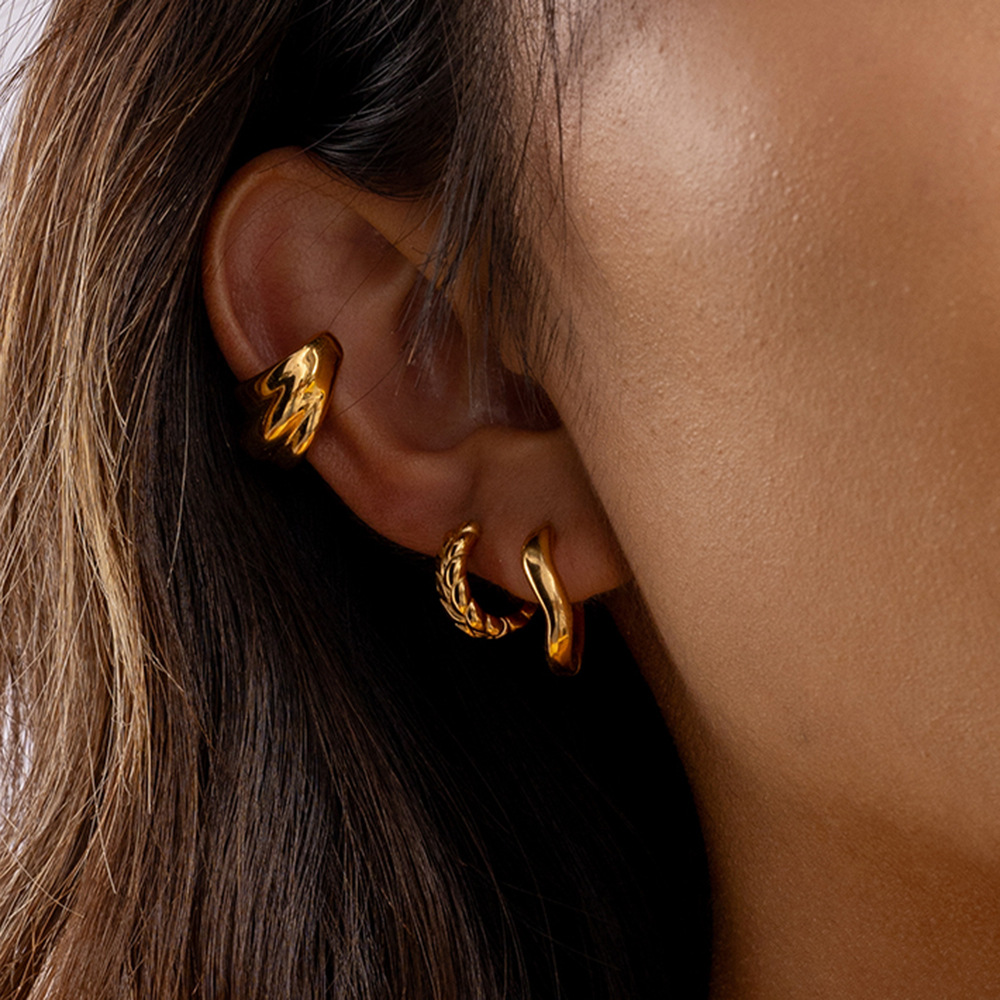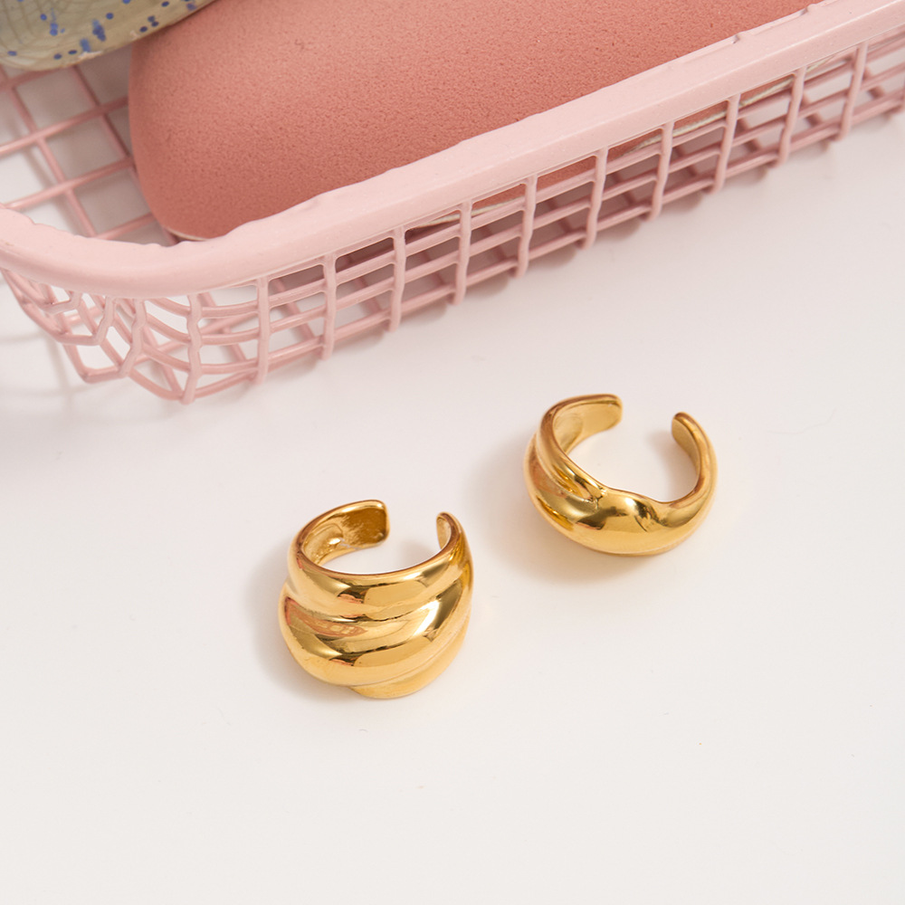 万兴欧美光面多层耳夹18K 金不锈钢耳环轻奢高级感跨境耳饰设计感