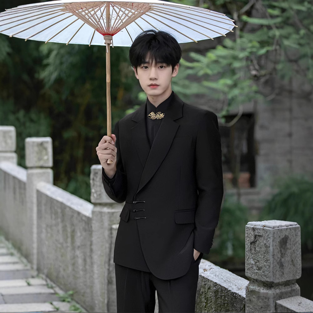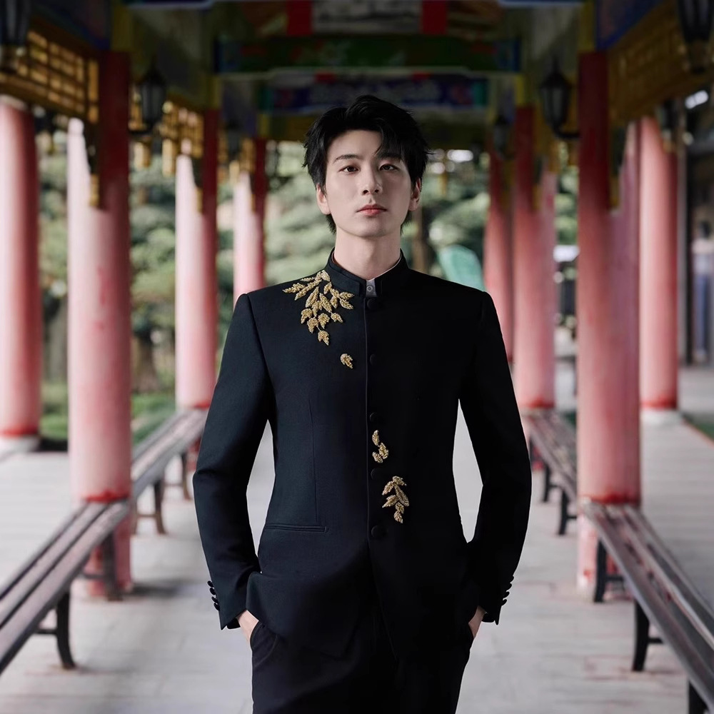 蔡成宇と同じスタイルの中国風の高級スタンドカラータキシードメンズ新しい中国風スーツジャケットスーツジャケット