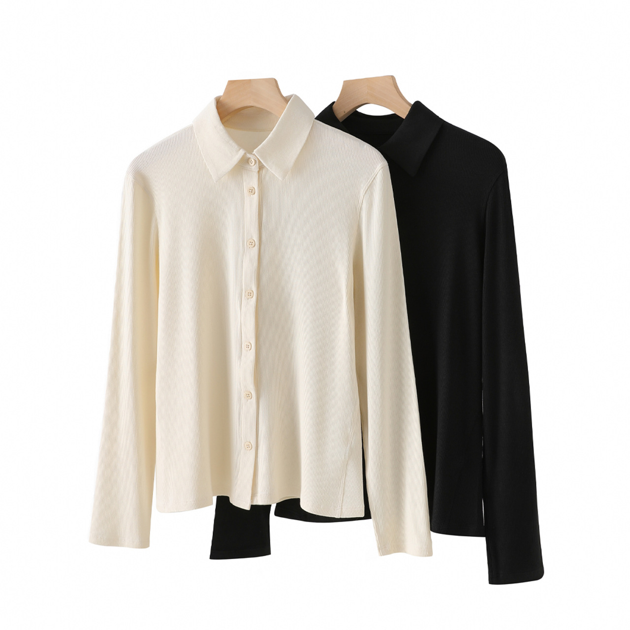 LU-长袖罗纹针织衬衫女2025新款
