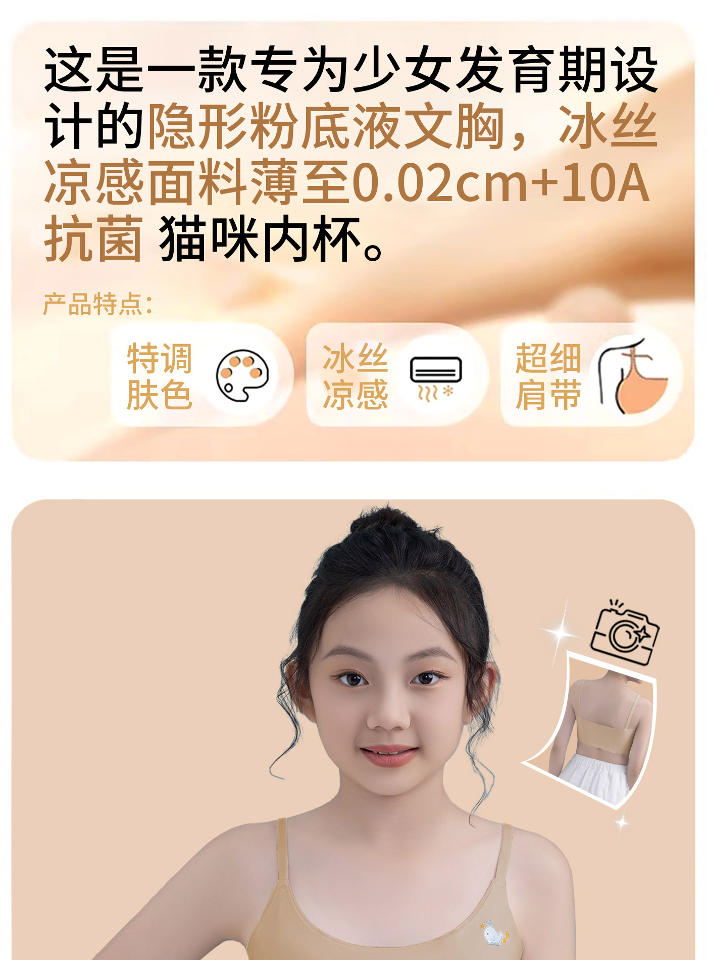 粉底液发育期少女内衣学生初中女文胸青春期发育内衣隐形超薄背心