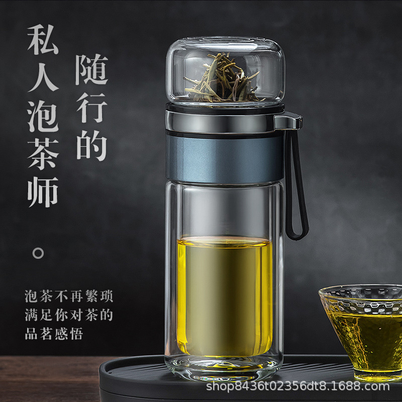 博英雅手持ちコップ大容量ガラスコップ男夏運動耐高温茶分離カップ