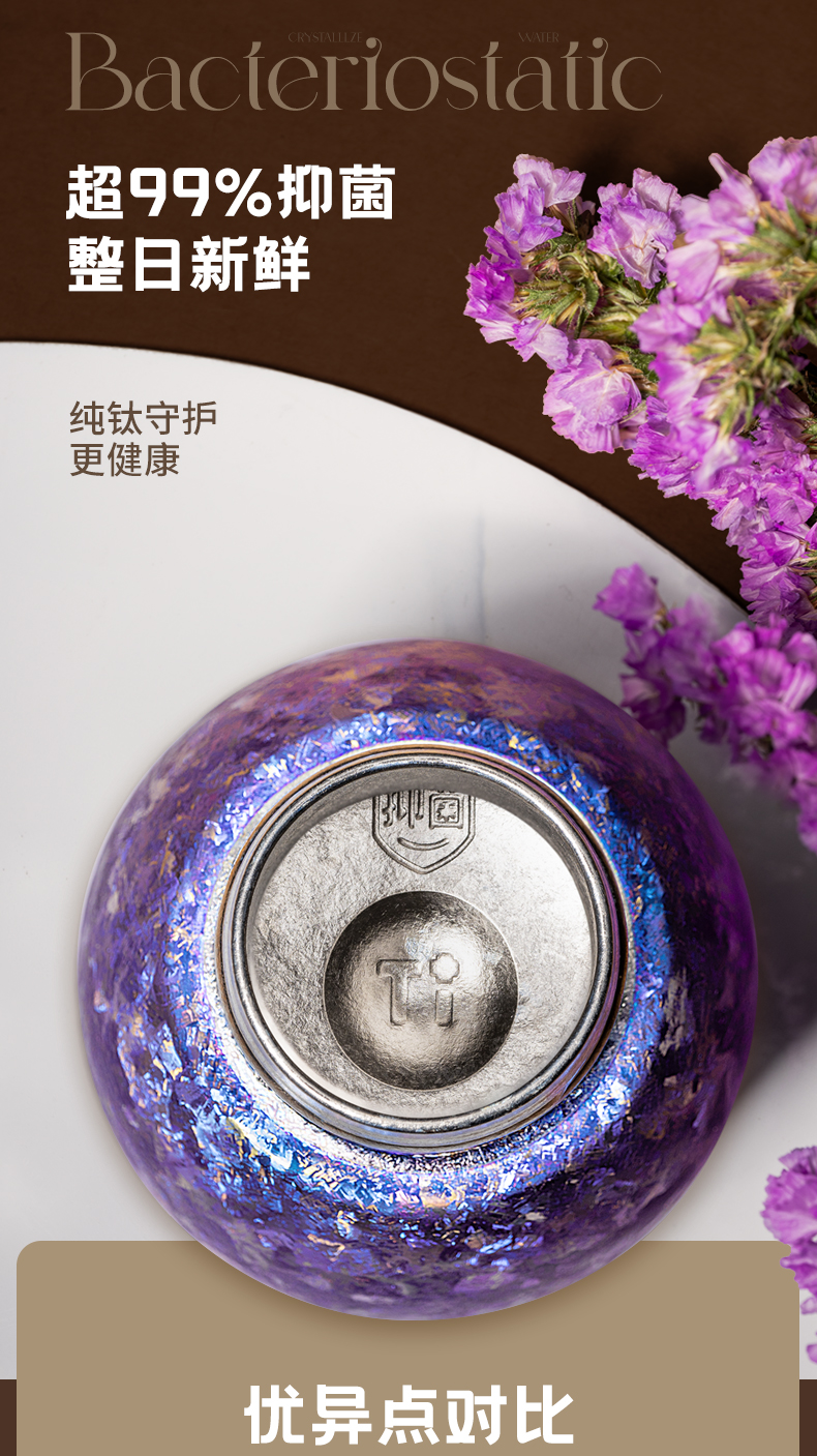新款钛杯纯钛保温水杯轻巧便携办公养生结晶冰花抑菌保鲜泡茶杯