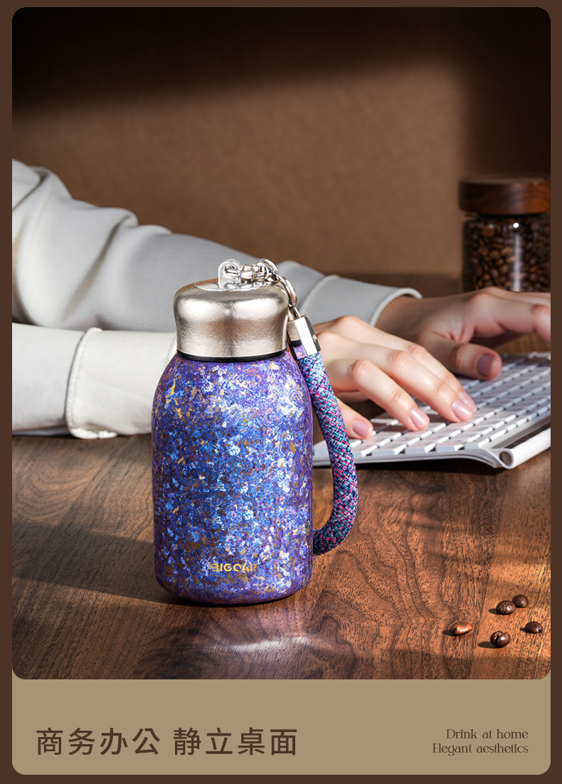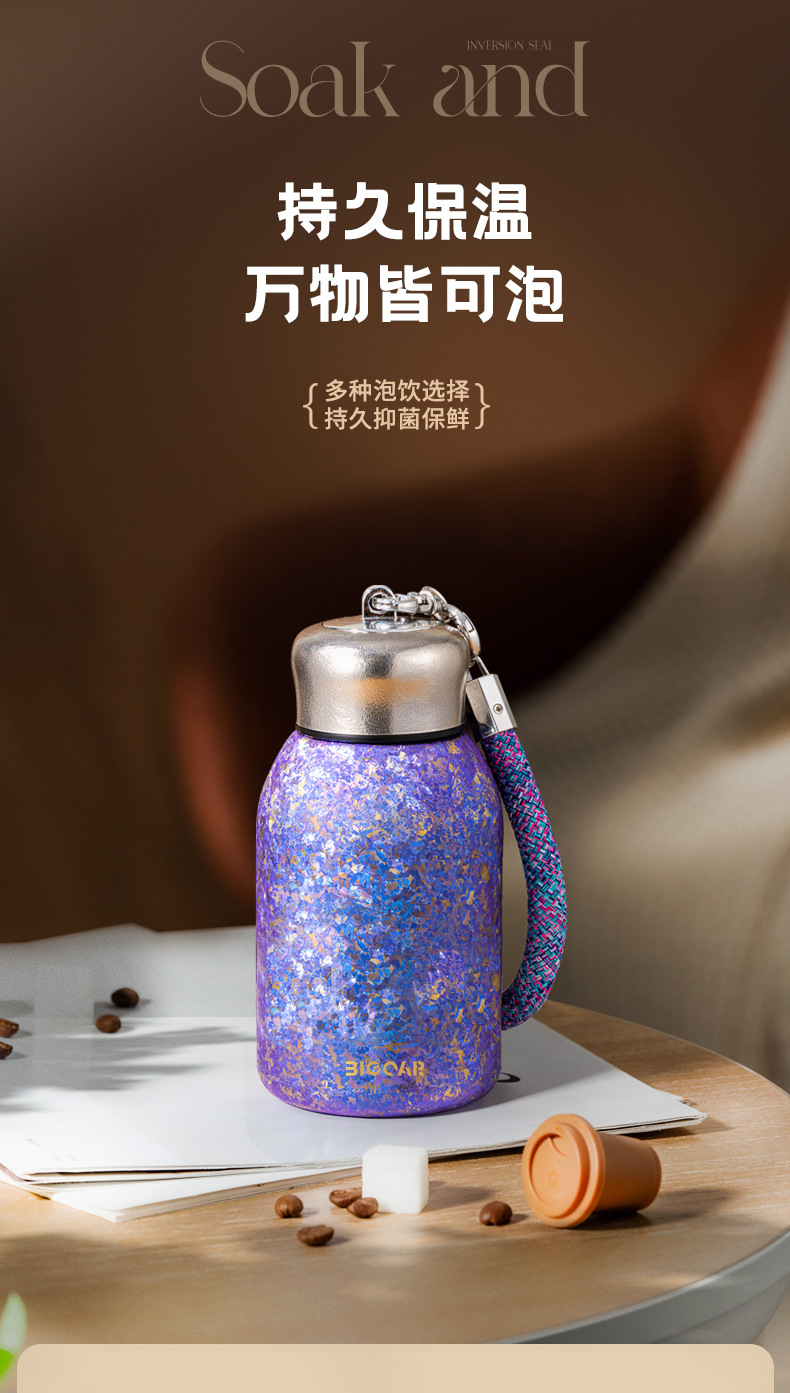 高档迷你纯钛小胖丁保温杯便携带提环口袋杯双层真空小巧随手杯