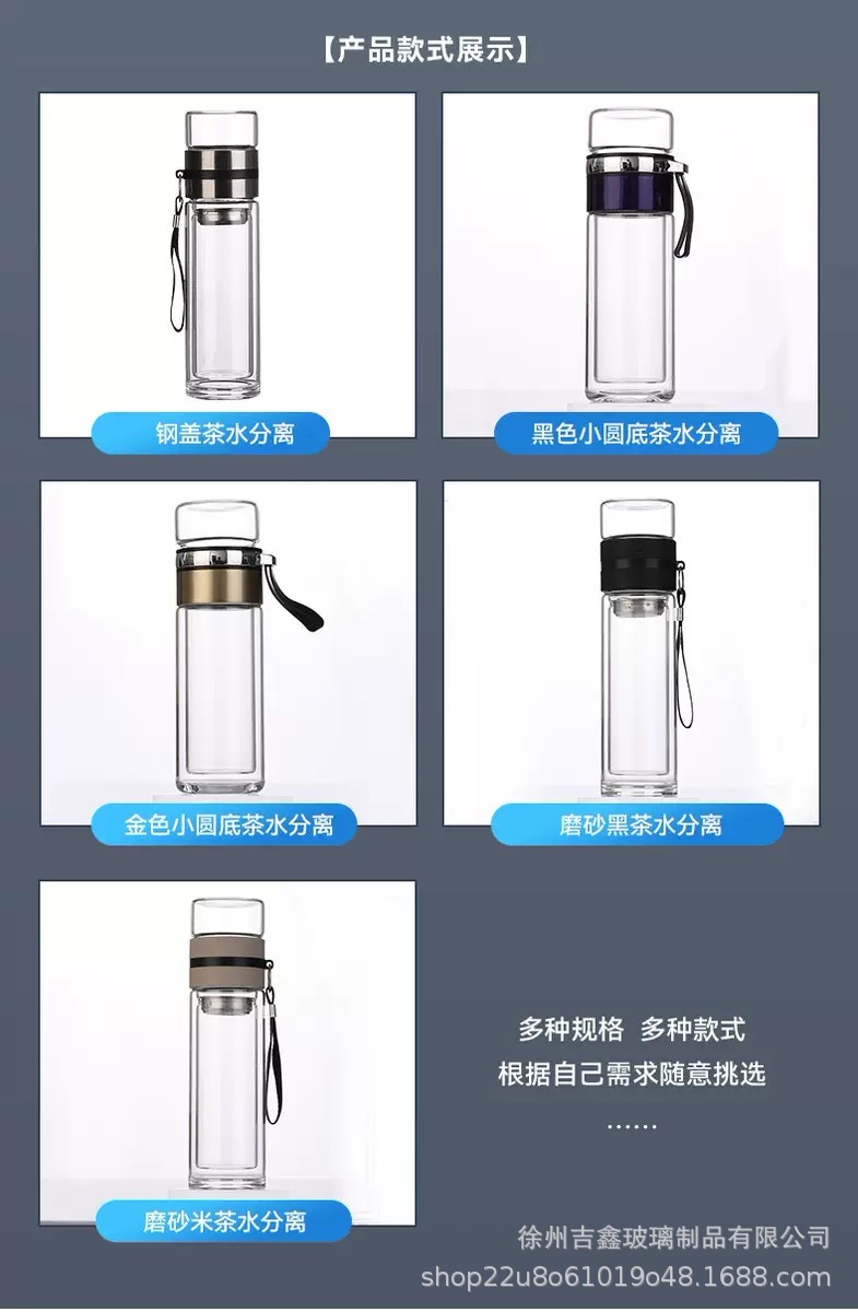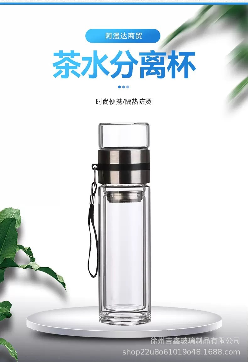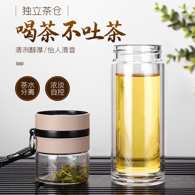 大容量二重ガラスカップポータブル茶水分离泡茶カップ男性泡カップ耐熱カップ