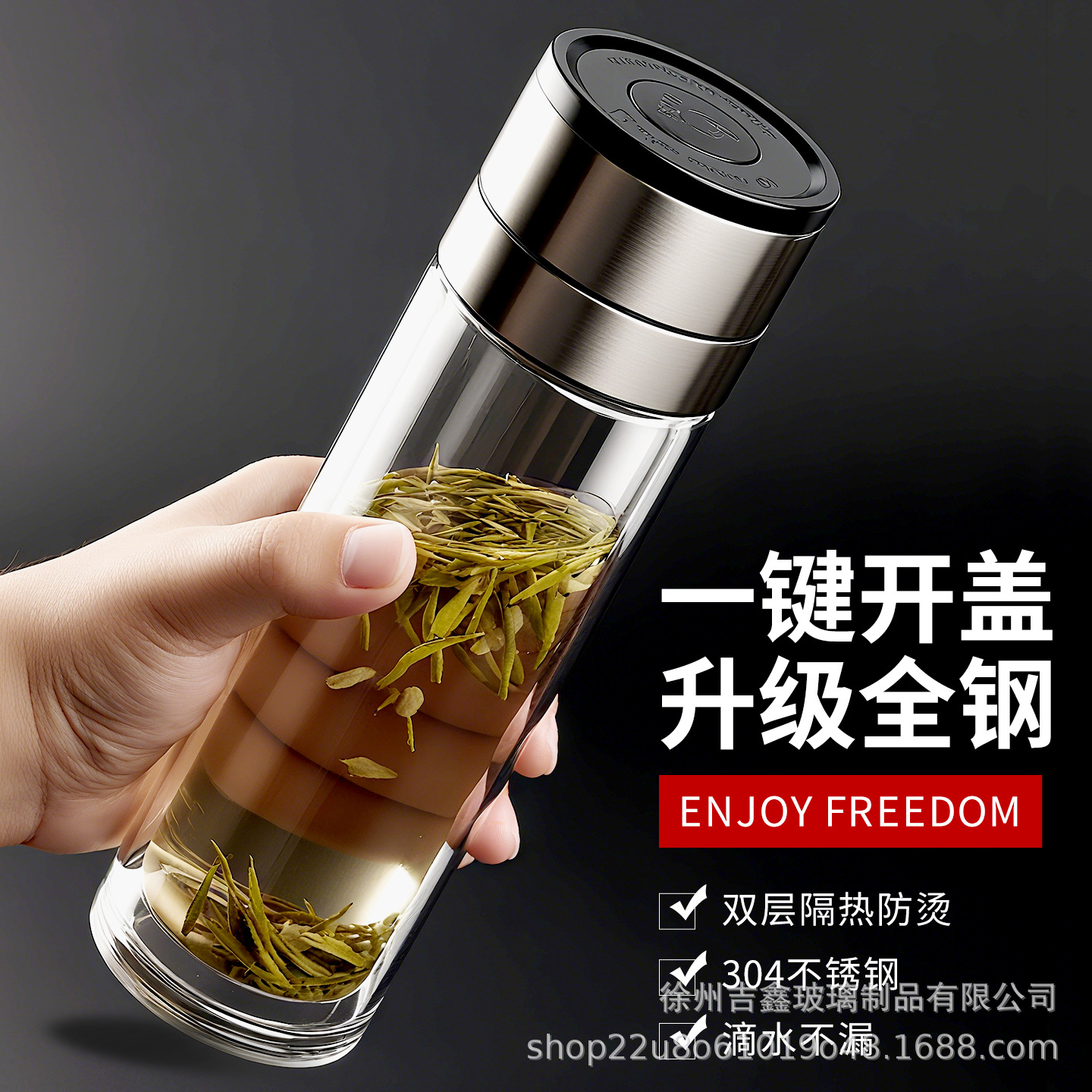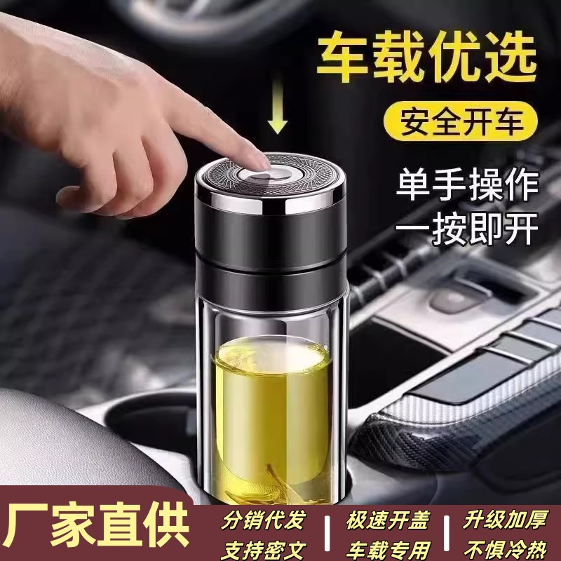 2024新型ワンタッチ開蓋速開カップ車載カップ二重断熱高ホウ素シリコングラス茶水分離カップ